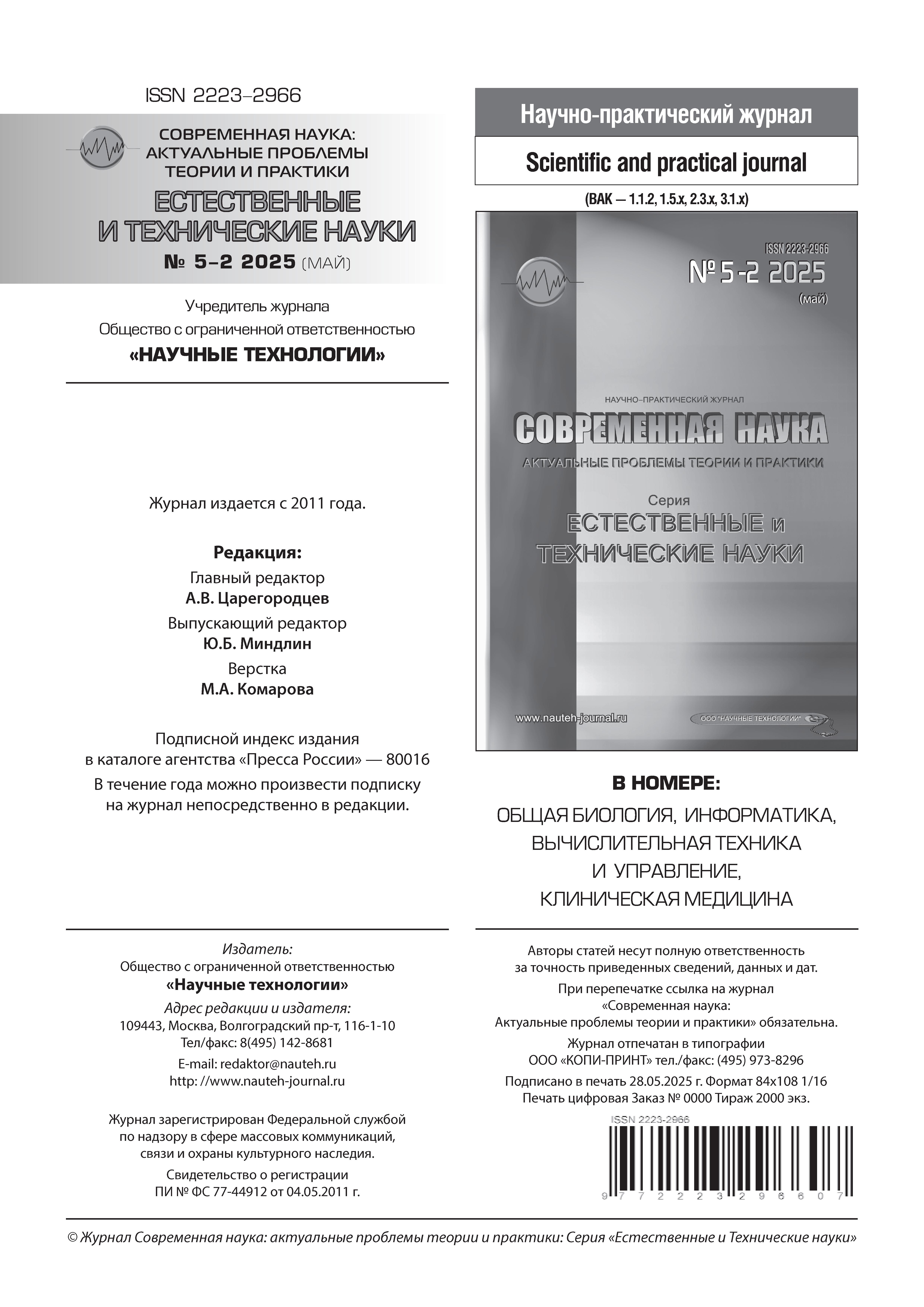 02.03.2026-16:35 Современная наука: актуальные проблемы теории и практики. Сер. Естественные и технические науки 2025 N5 Современная наука: актуальные проблемы теории и практики. Сер. Естественные и технические науки 2025 N5 2025 7 , , ,