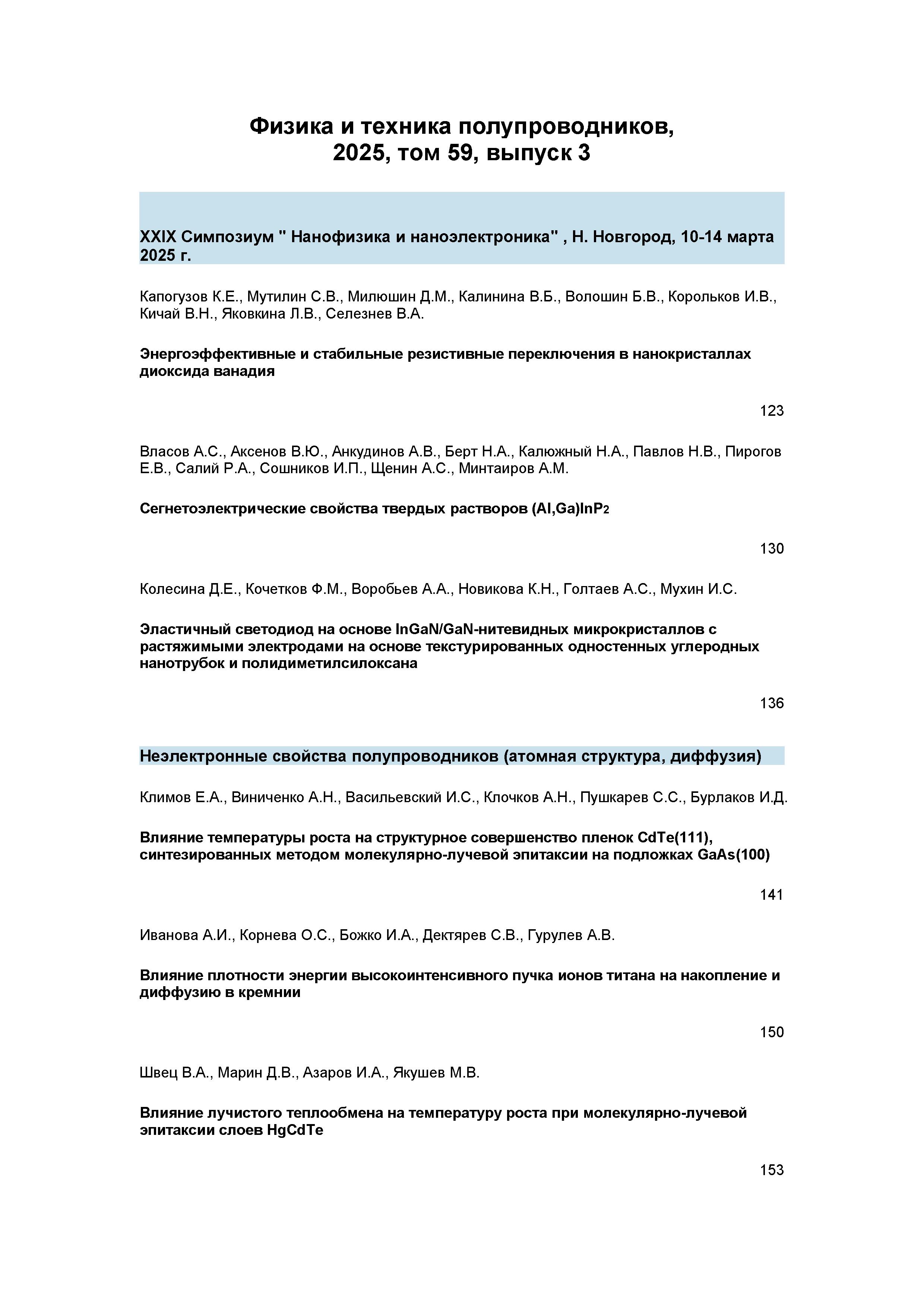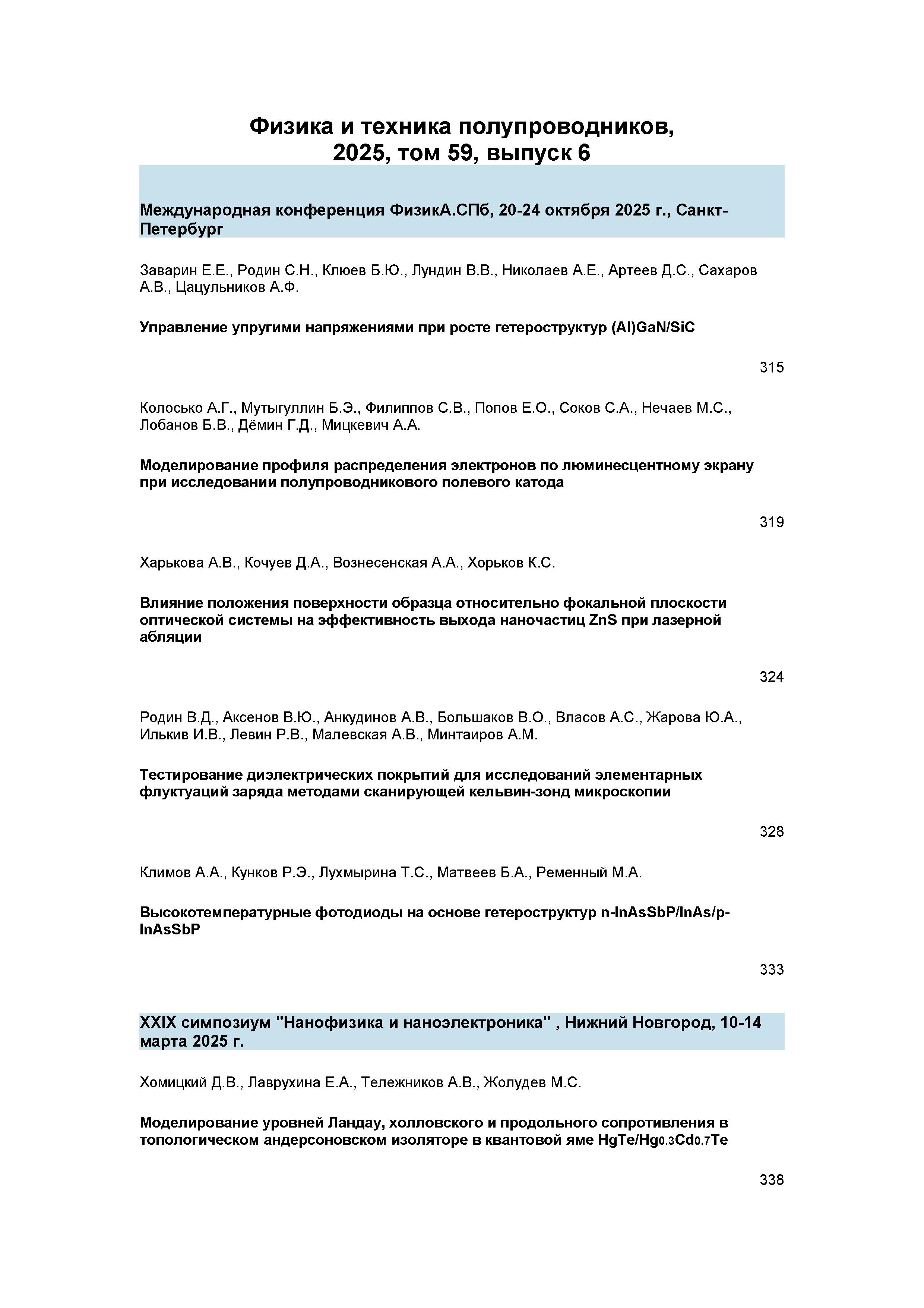 Физика и техника полупроводников 2025 Т.59 N 3 |