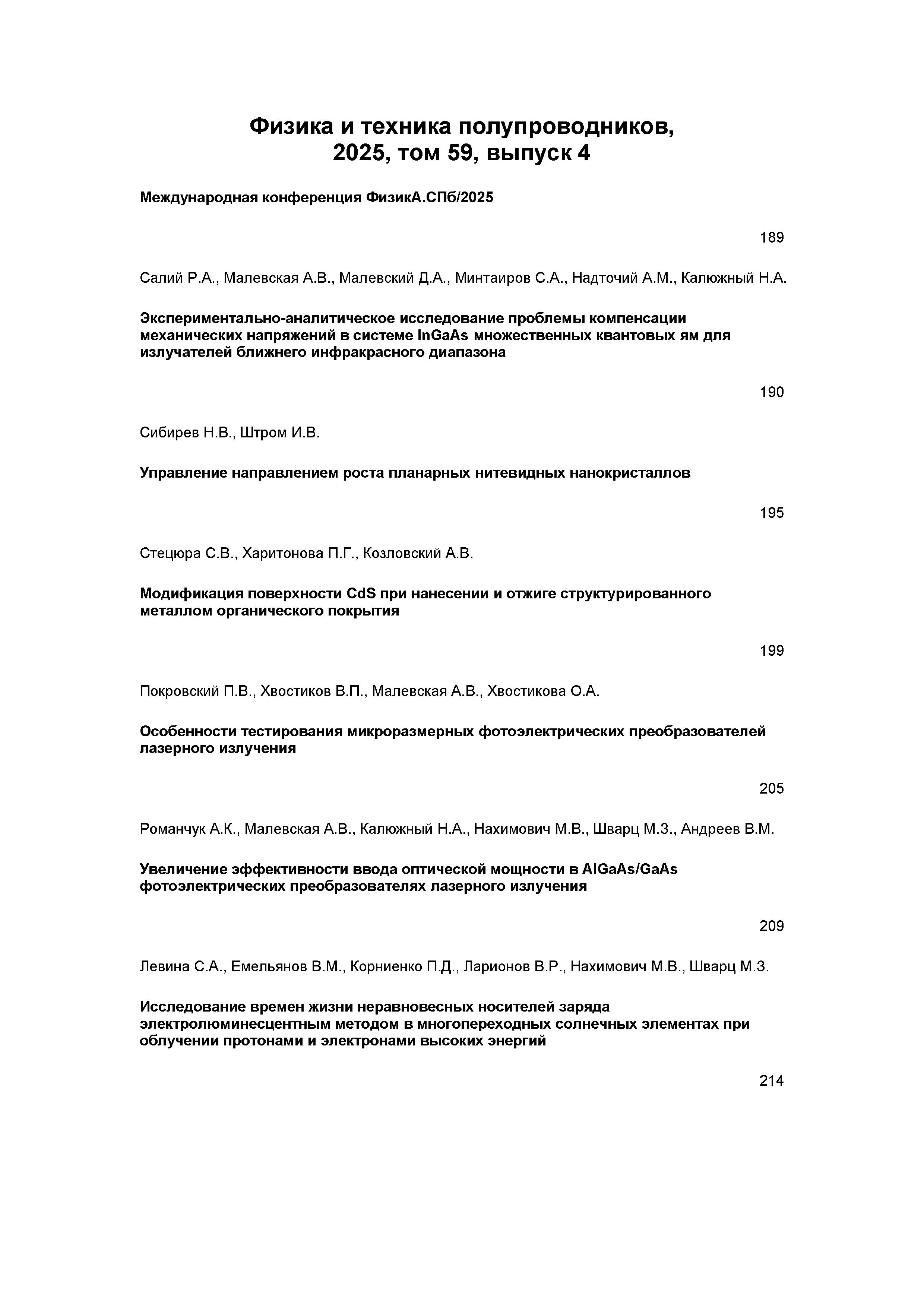 Физика и техника полупроводников 2025 Т.59 N 4 |