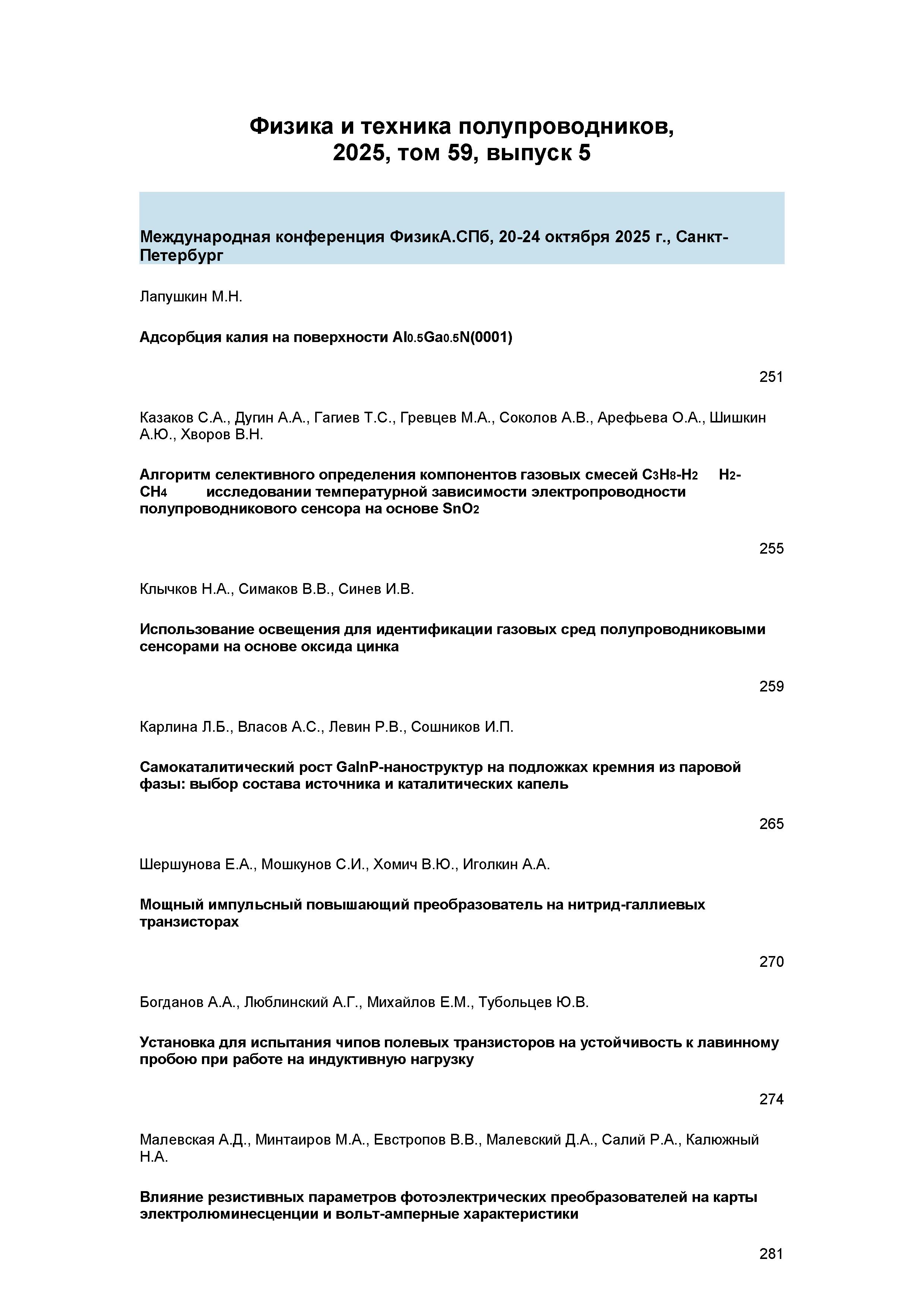 Физика и техника полупроводников 2025 Т.59 N 5 |