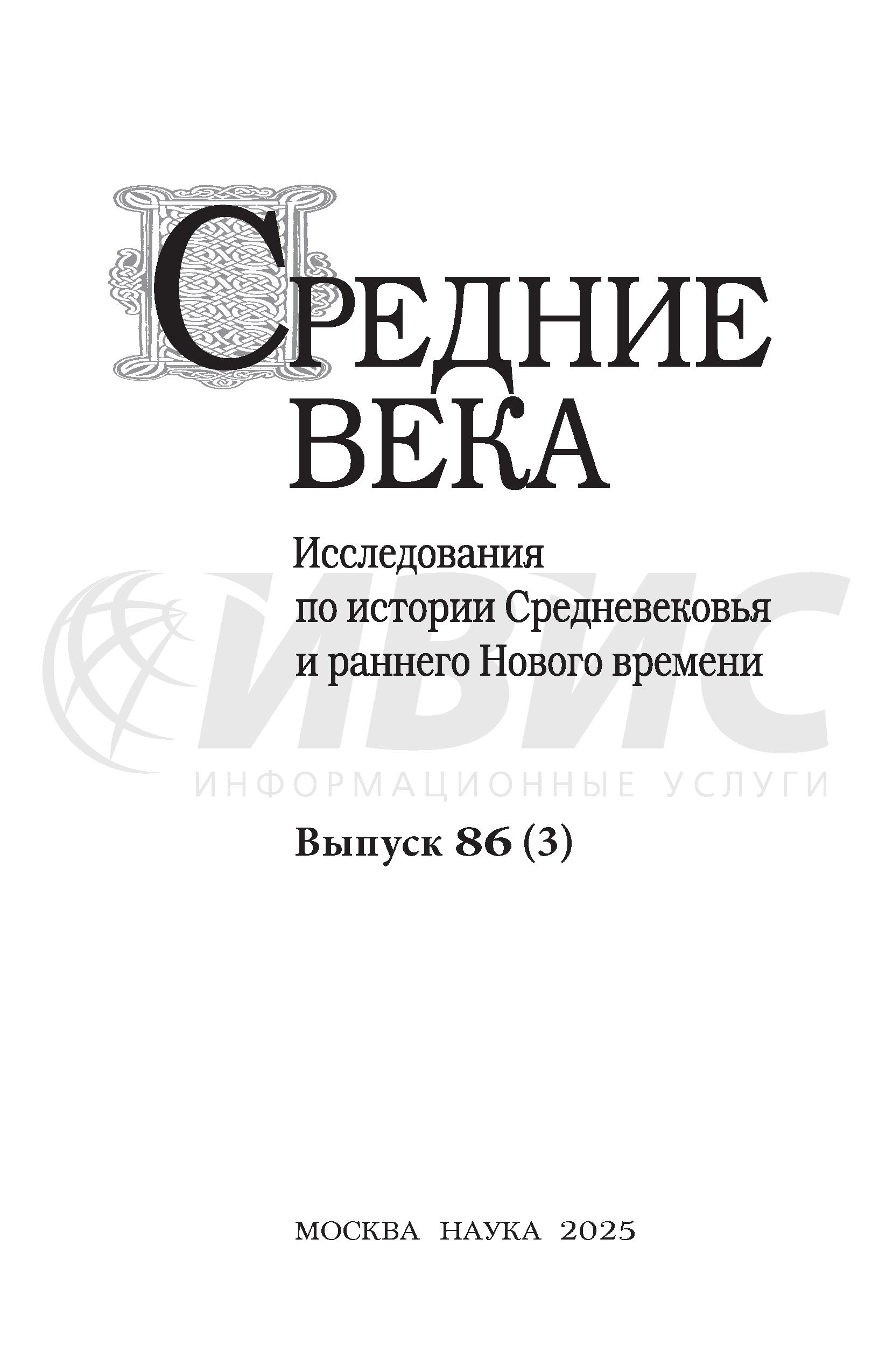 Средние века 2025 Т.86 N 3 |