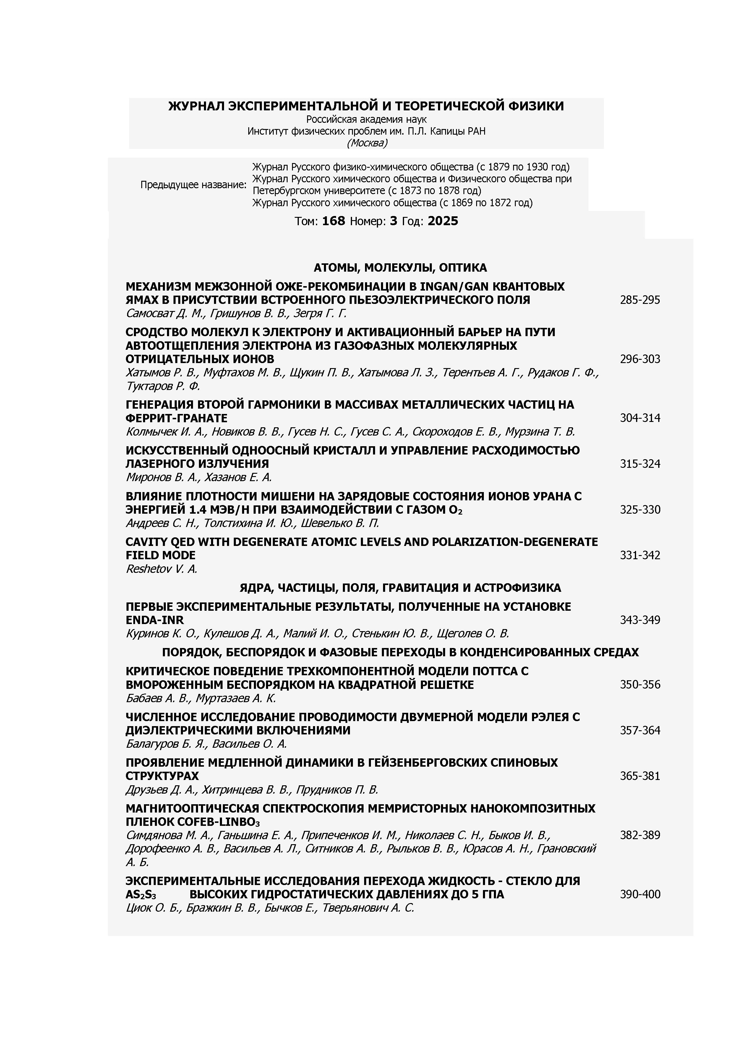 Журнал экспериментальной и теоретической физики 2025 Т.168 N 3 |