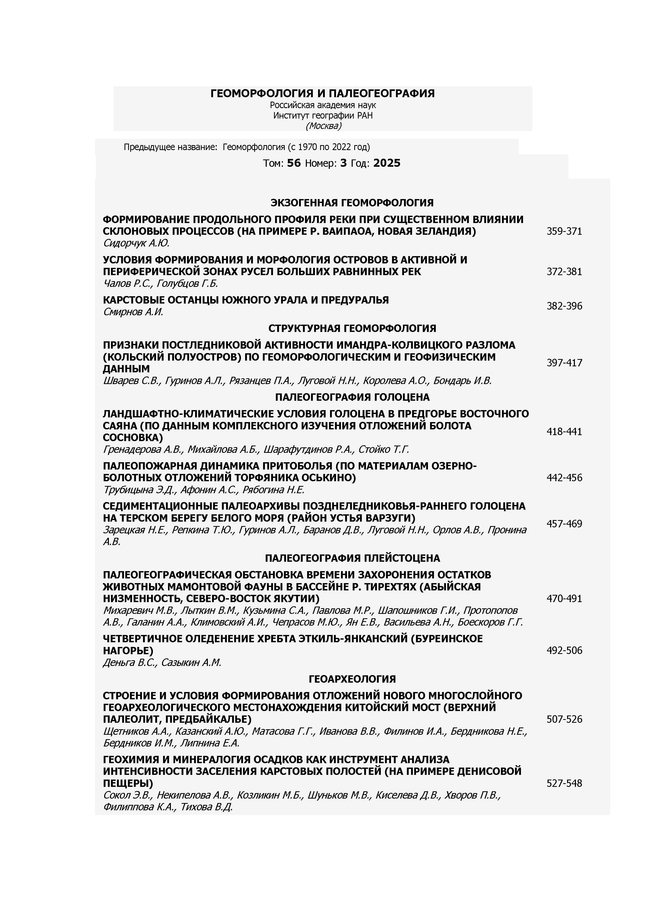 Геоморфология и палеогеография 2025 N 3 | Геоморфология и палеогеография 2025 N 3 | 2025 | 3 |