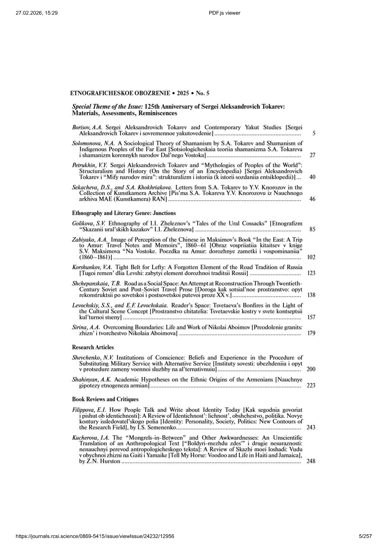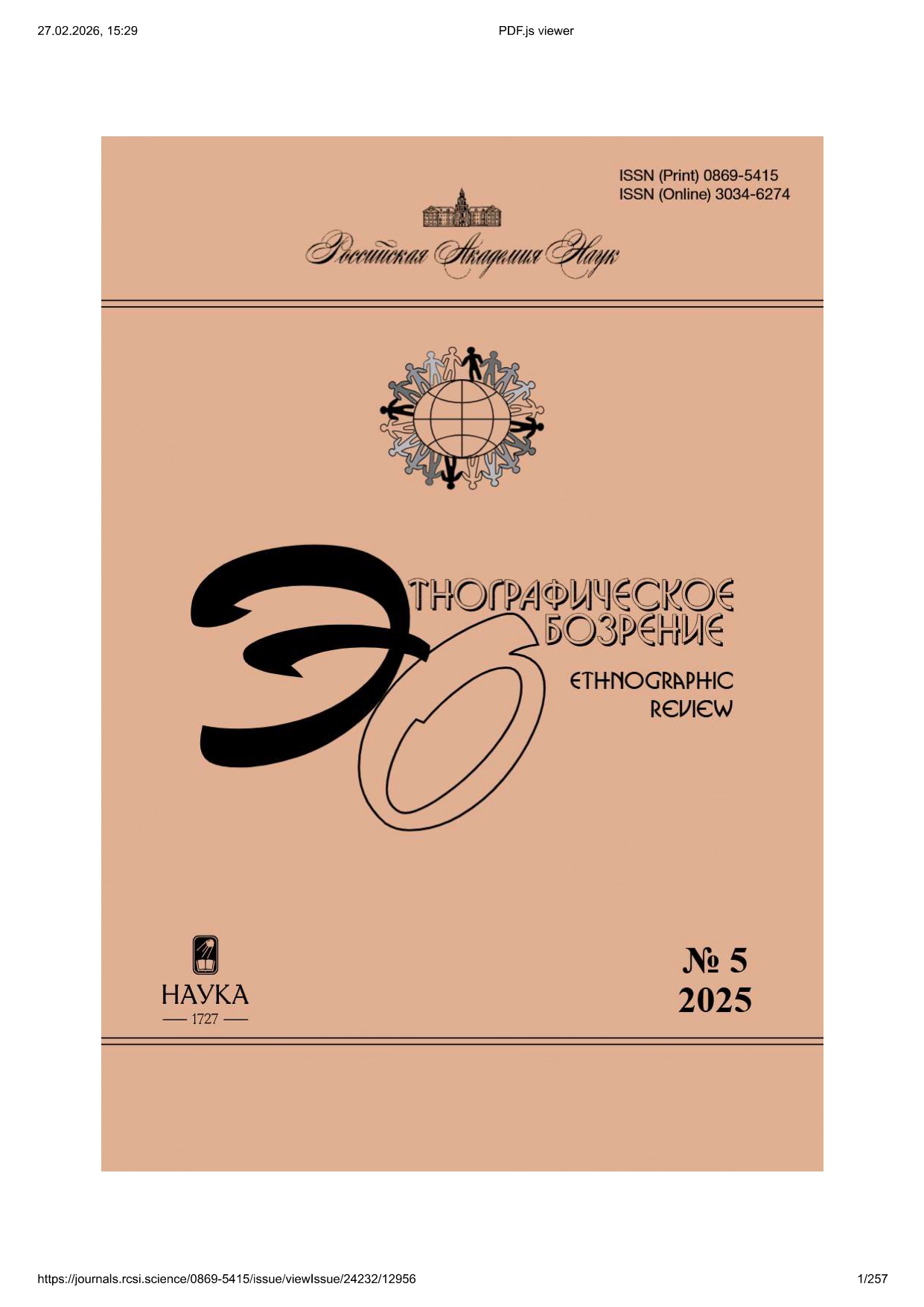 Этнографическое обозрение 2025 № 5 | Этнографическое обозрение 2025 № 5 | 2025 | 5 |