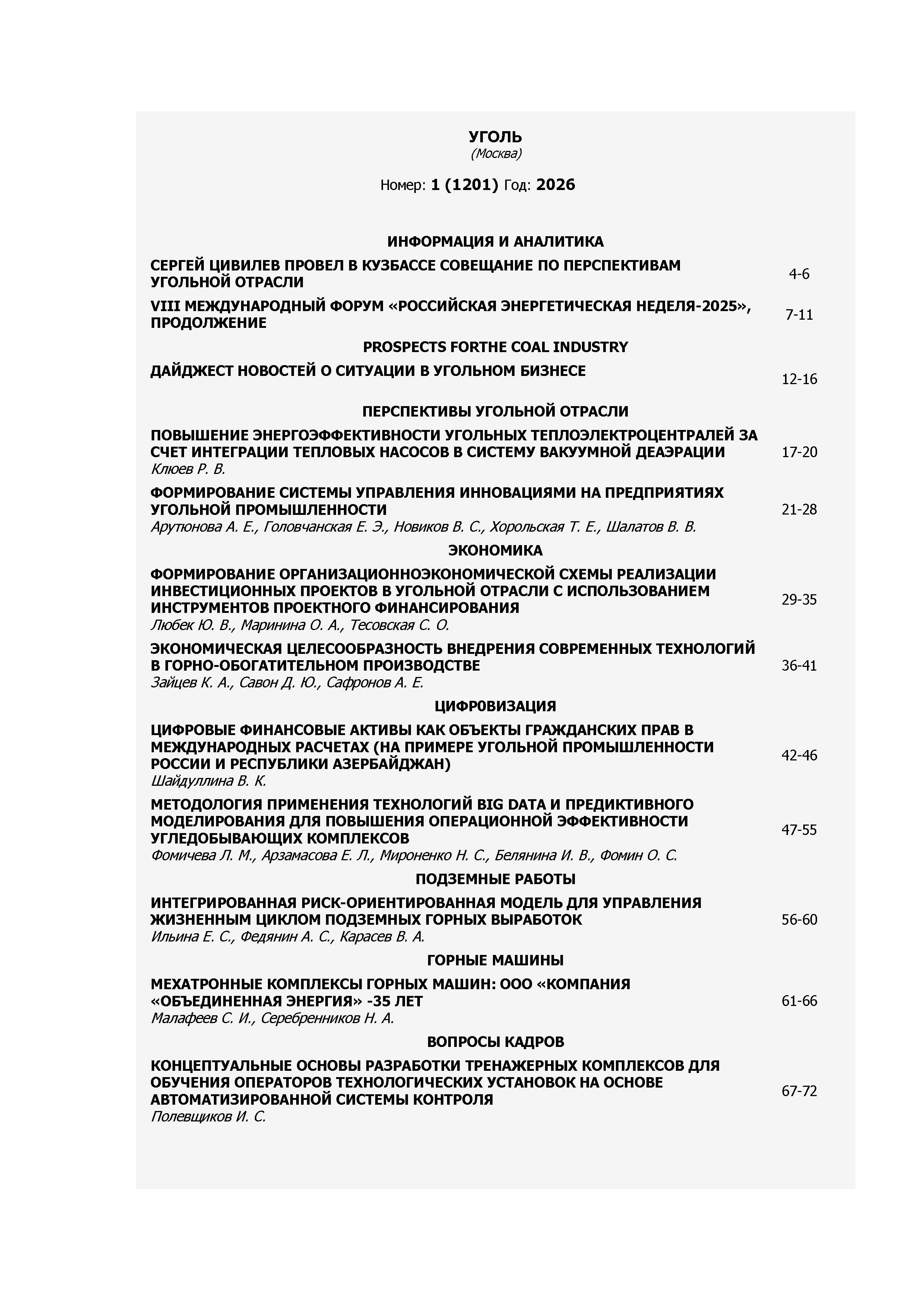 Уголь 2026 N 1 | Уголь 2026 N 1 | 2026 | 1 |