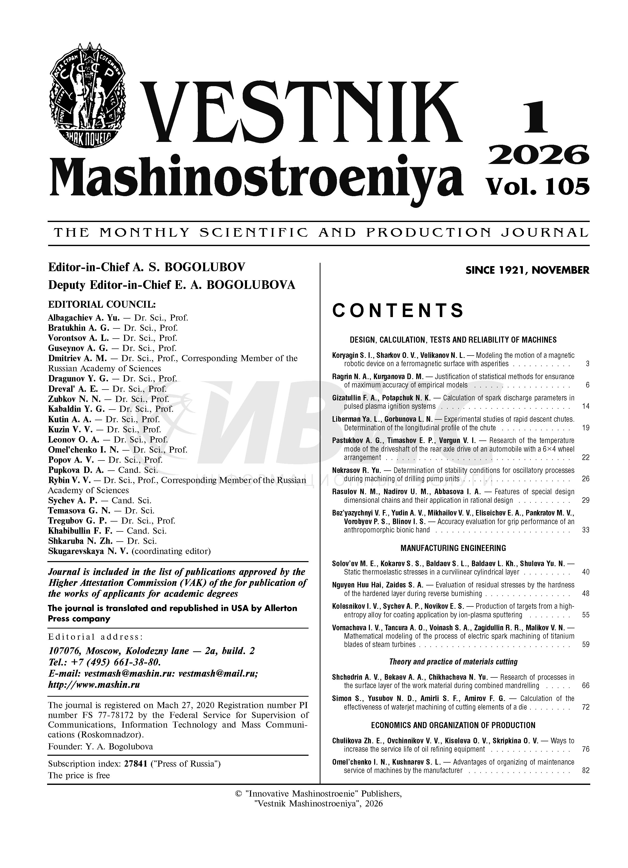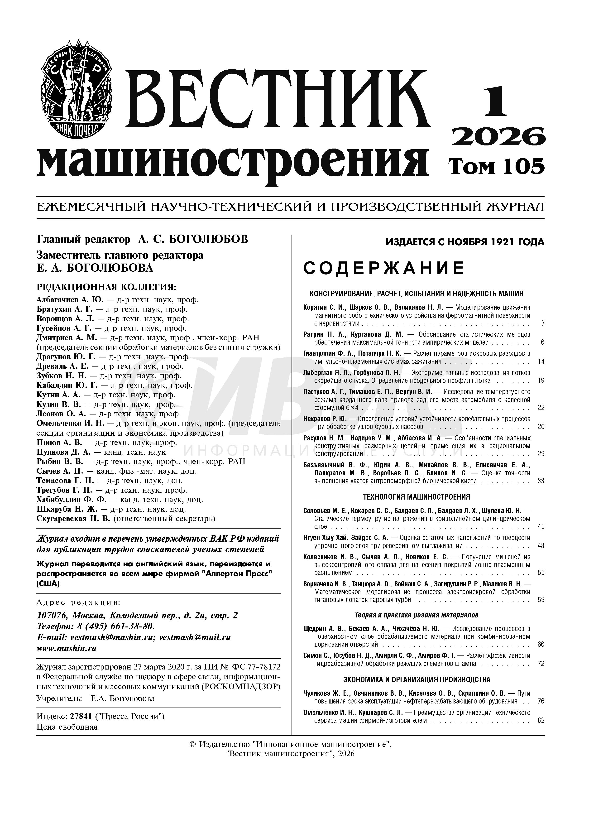 Вестник машиностроения 2026 № 1 | Вестник машиностроения 2026 № 1 | 2026 | 1 |