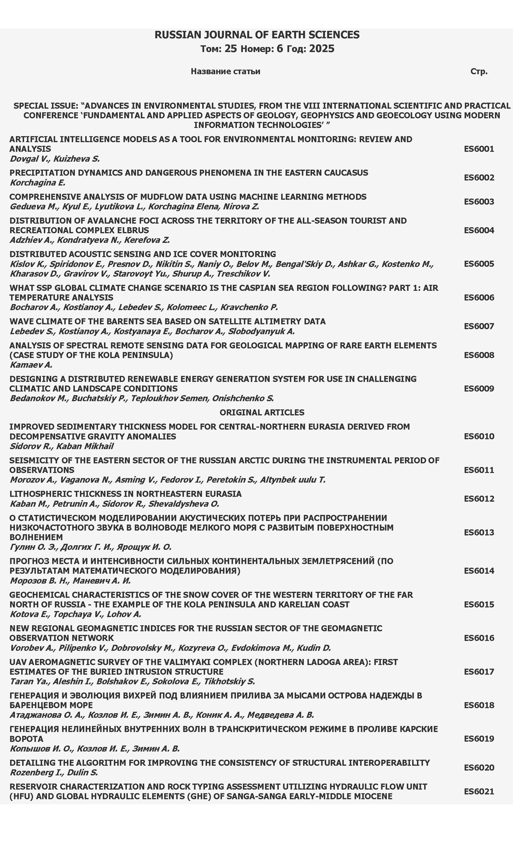 12.03.2026-17:10 Russian Journal of Earth Sciences 2025 Vol. 25 № 6 Russian Journal of Earth Sciences 2025 Vol. 25 № 6 2025 6 ,
