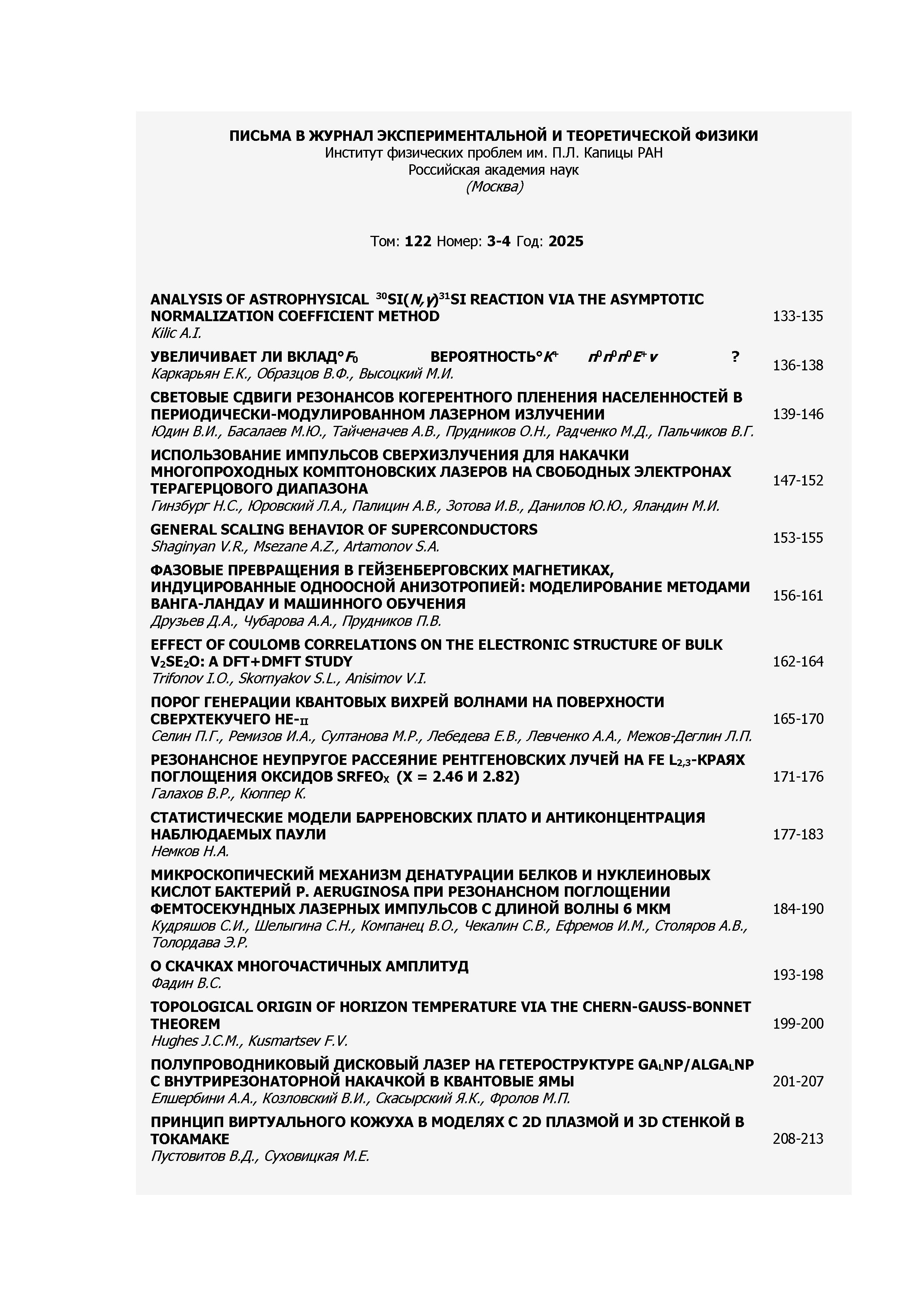 Письма в Журнал экспериментальной и теоретической физики 2025 Т.122 N 3-4 |