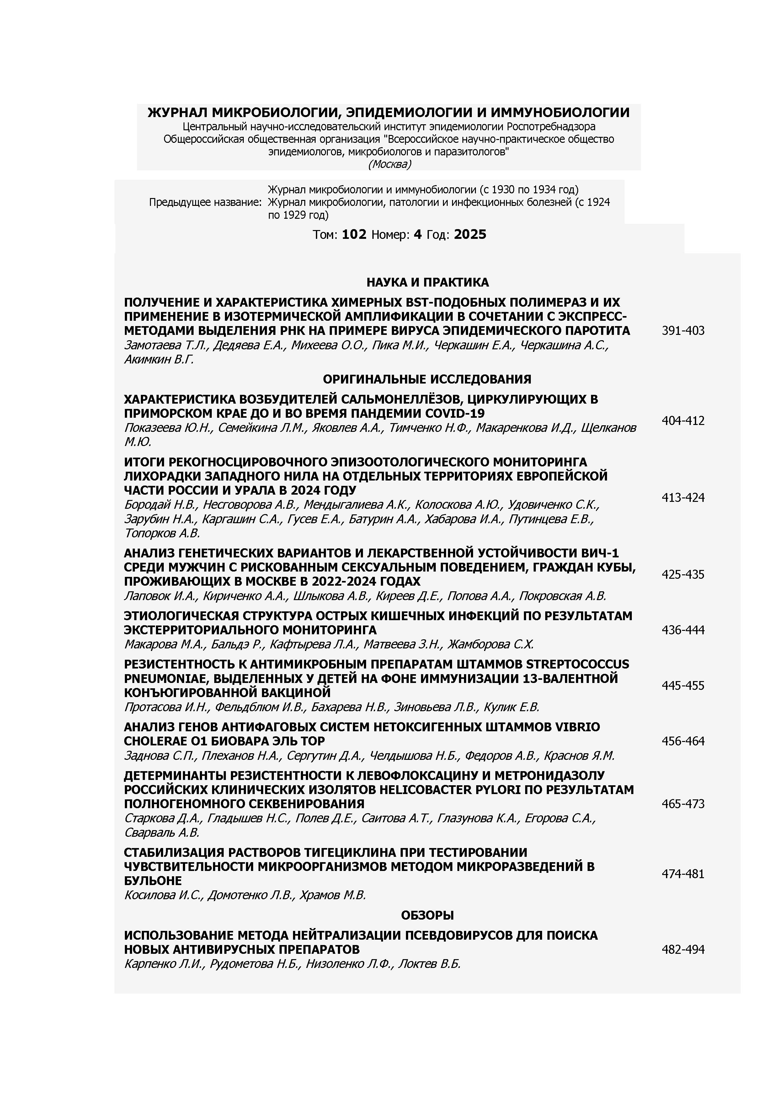 Журнал микробиологии, эпидемиологии и иммунологии 2025 N 4 |