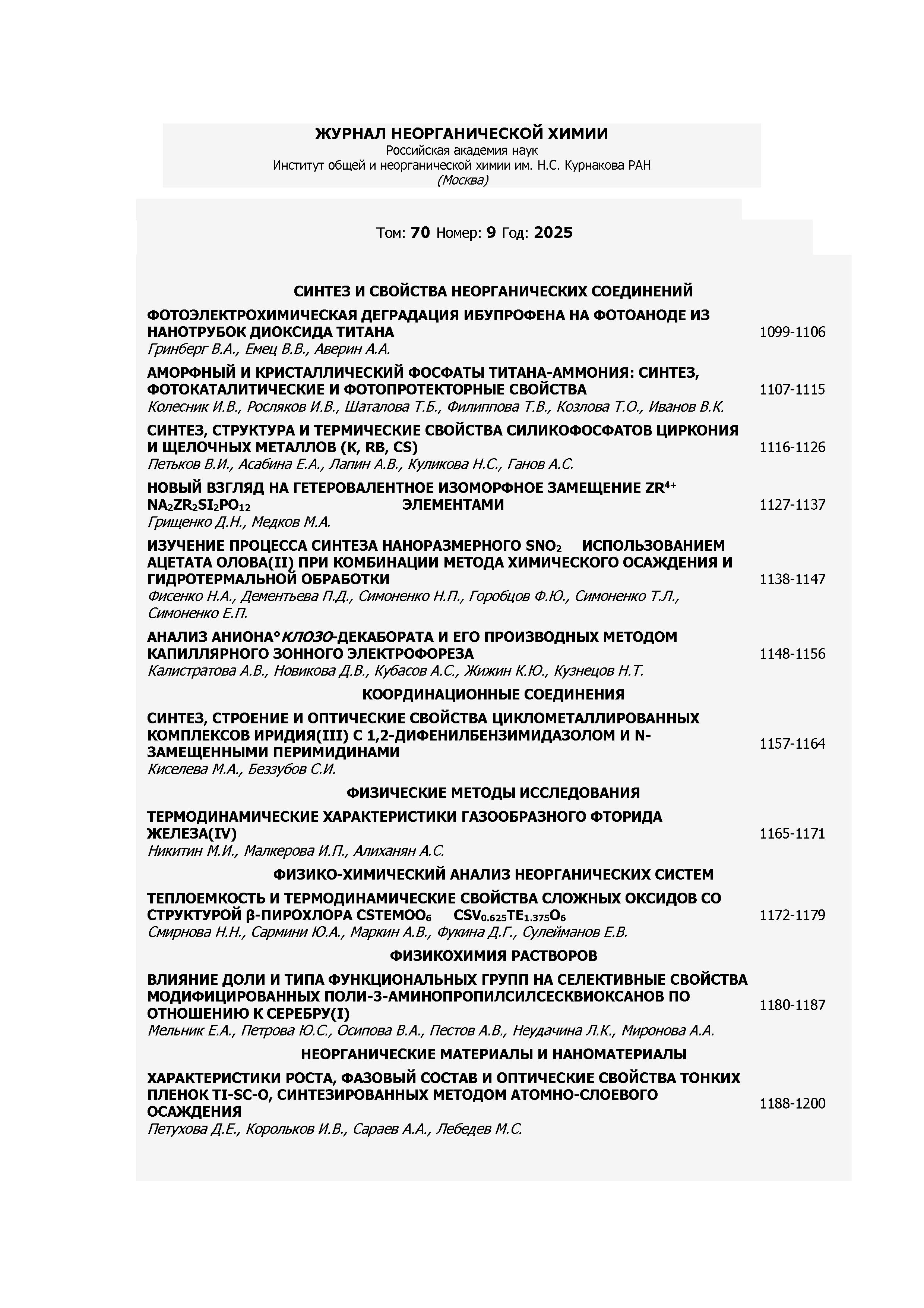 Журнал неорганической химии 2025 Т.70 № 9 |