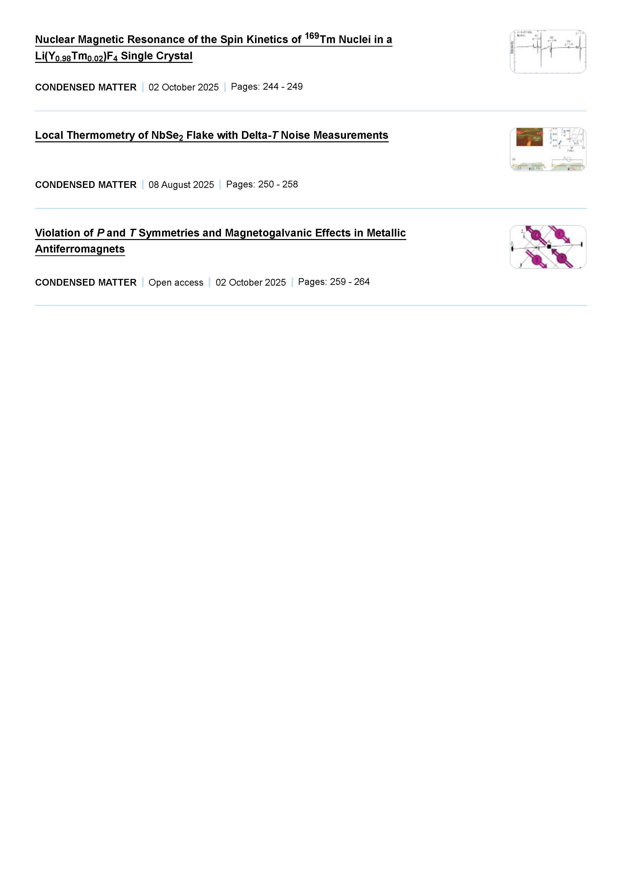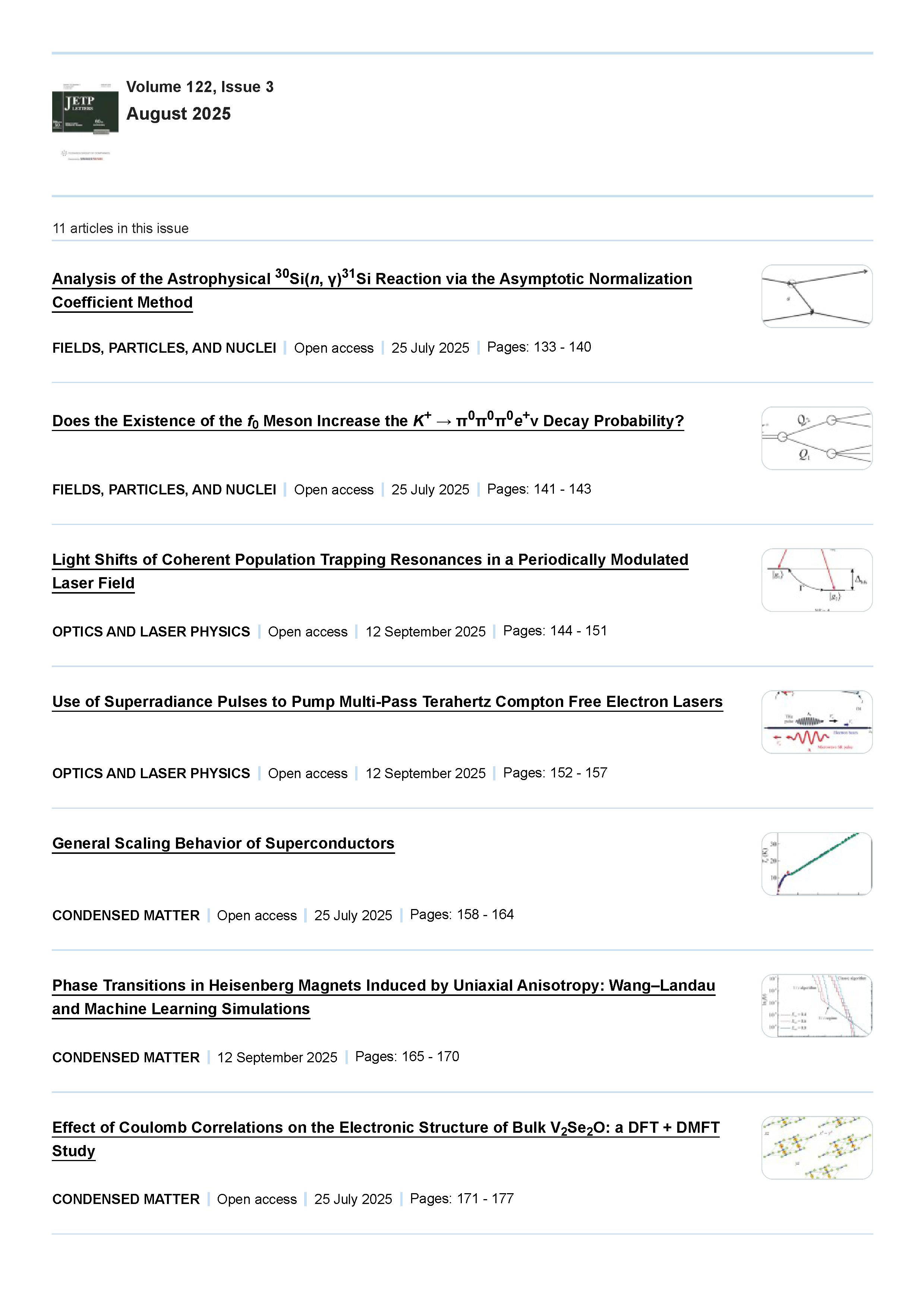 JETP Letters 2025 Vol. 122 Is. 3 | JETP Letters 2025 Vol. 122 Is. 3 | 2025 | 15 |