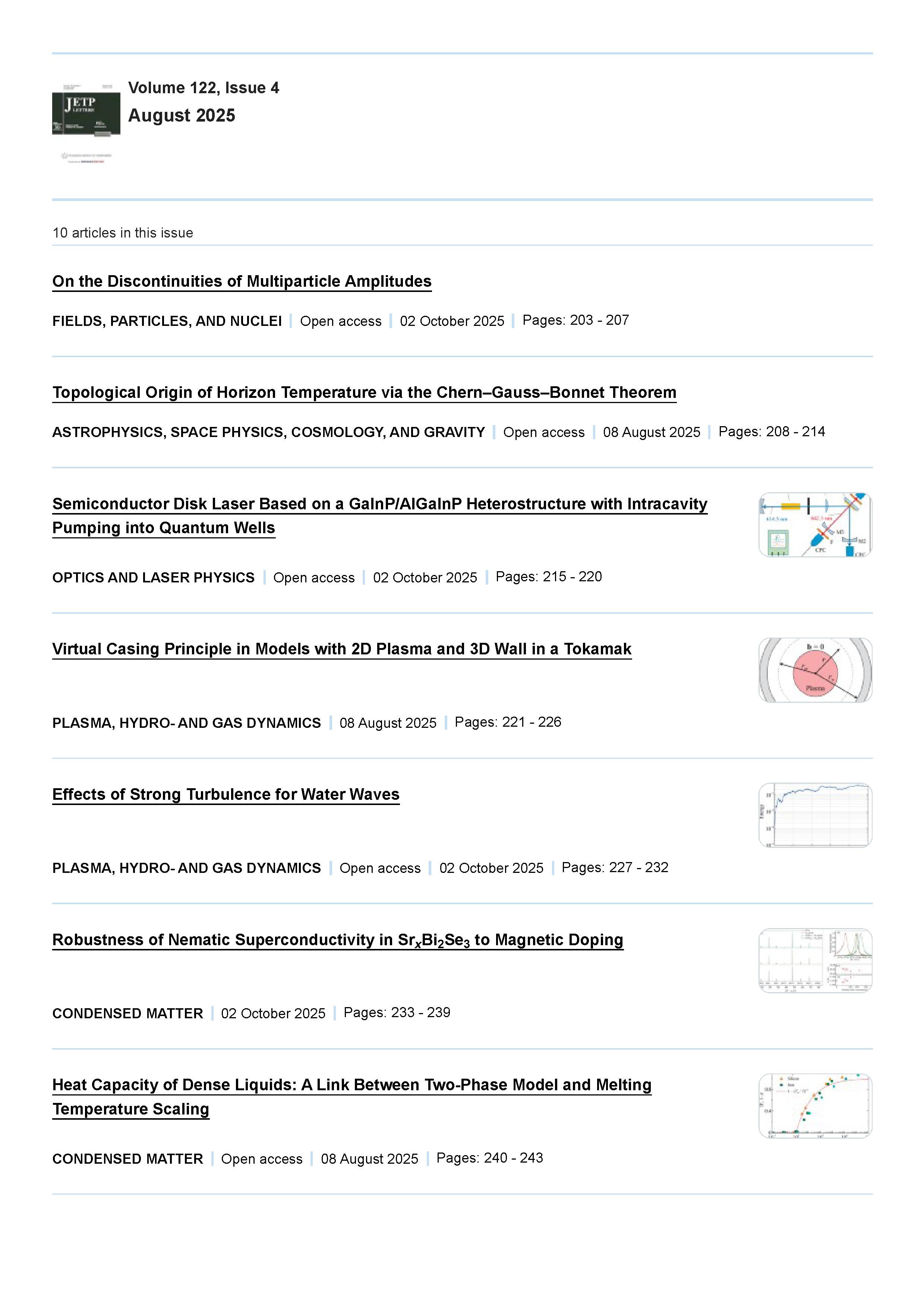 JETP Letters 2025 Vol. 122 Is. 4 | JETP Letters 2025 Vol. 122 Is. 4 | 2025 | 16 |
