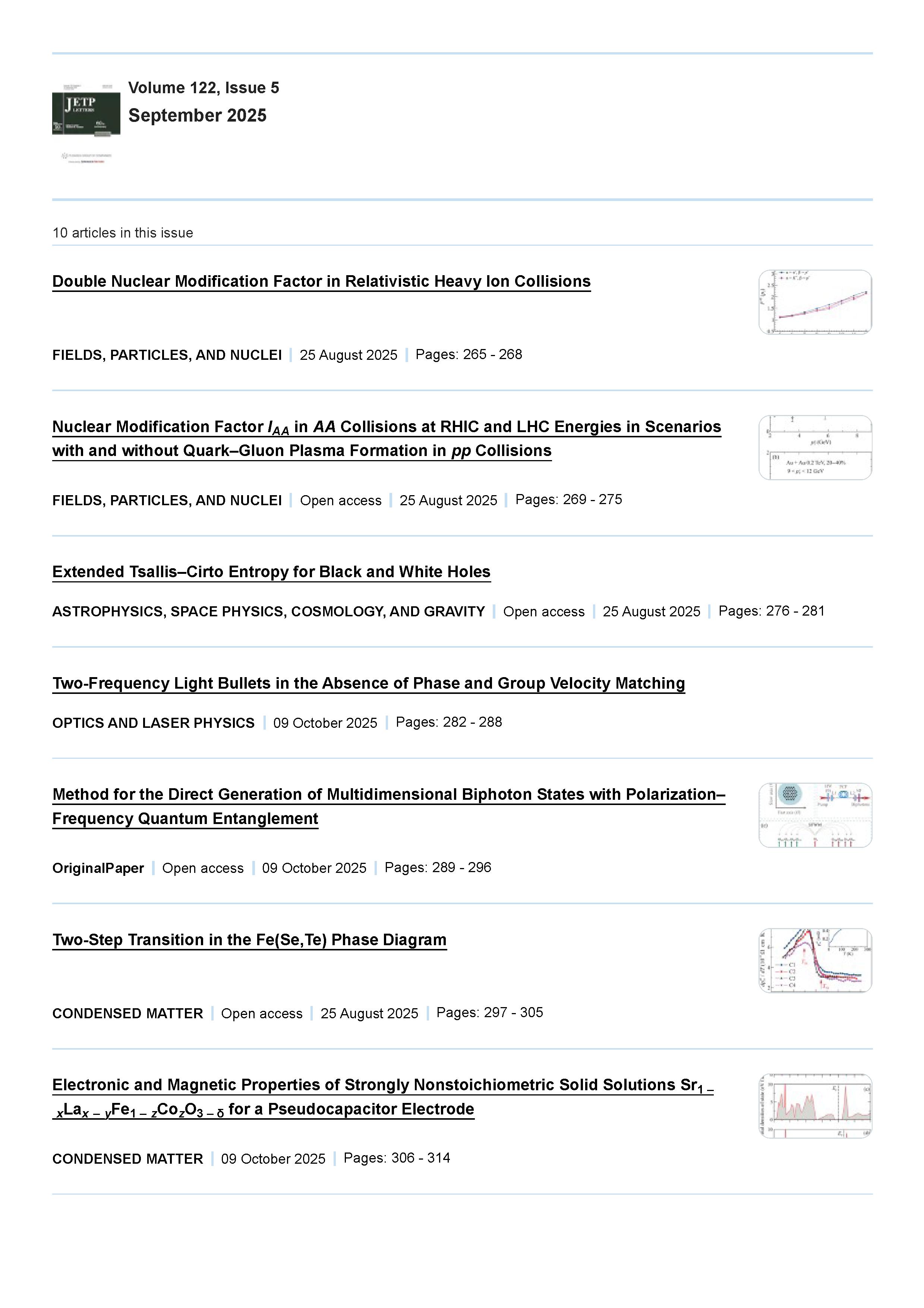 JETP Letters 2025 Vol. 122 Is. 5 | JETP Letters 2025 Vol. 122 Is. 5 | 2025 | 17 |