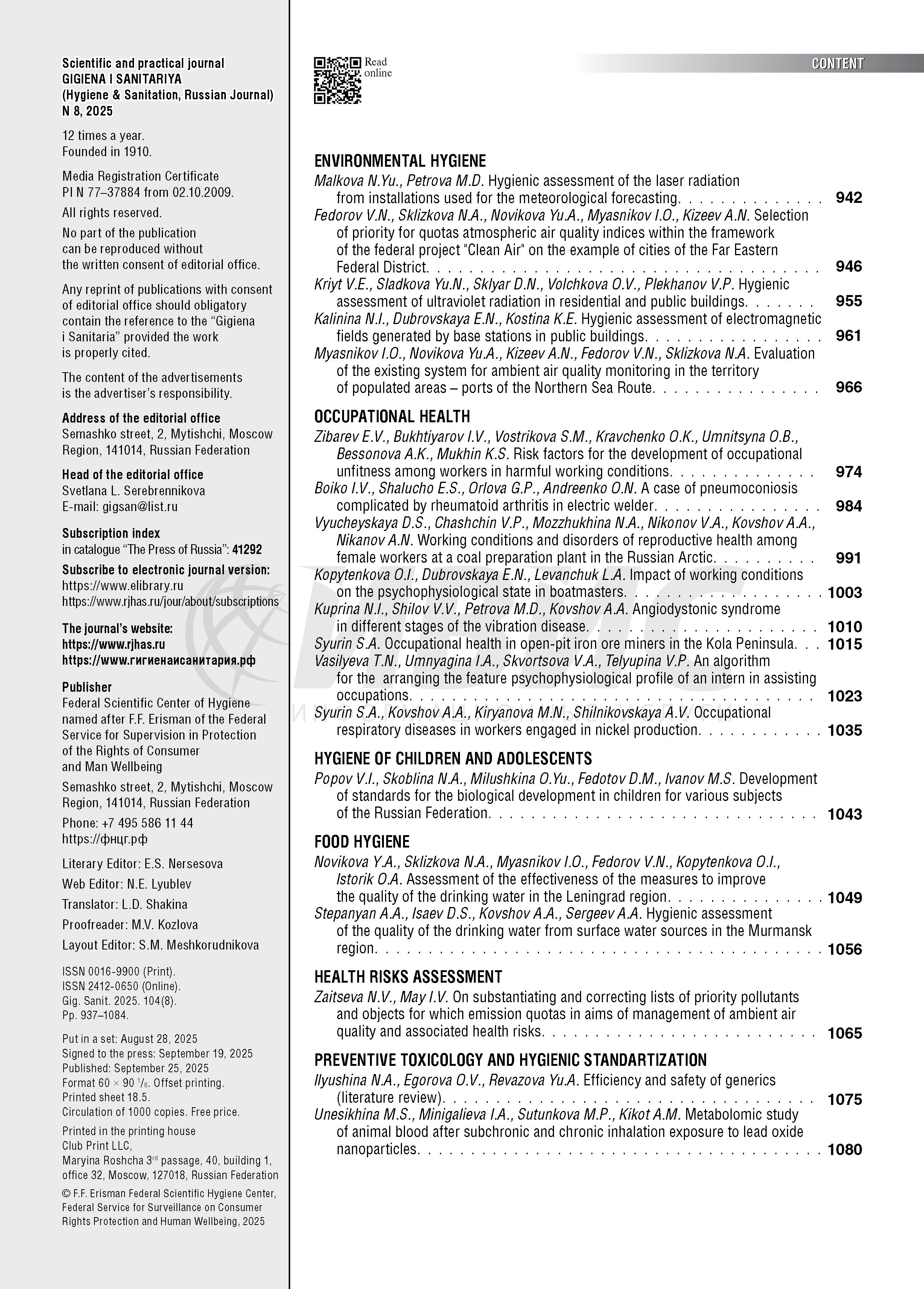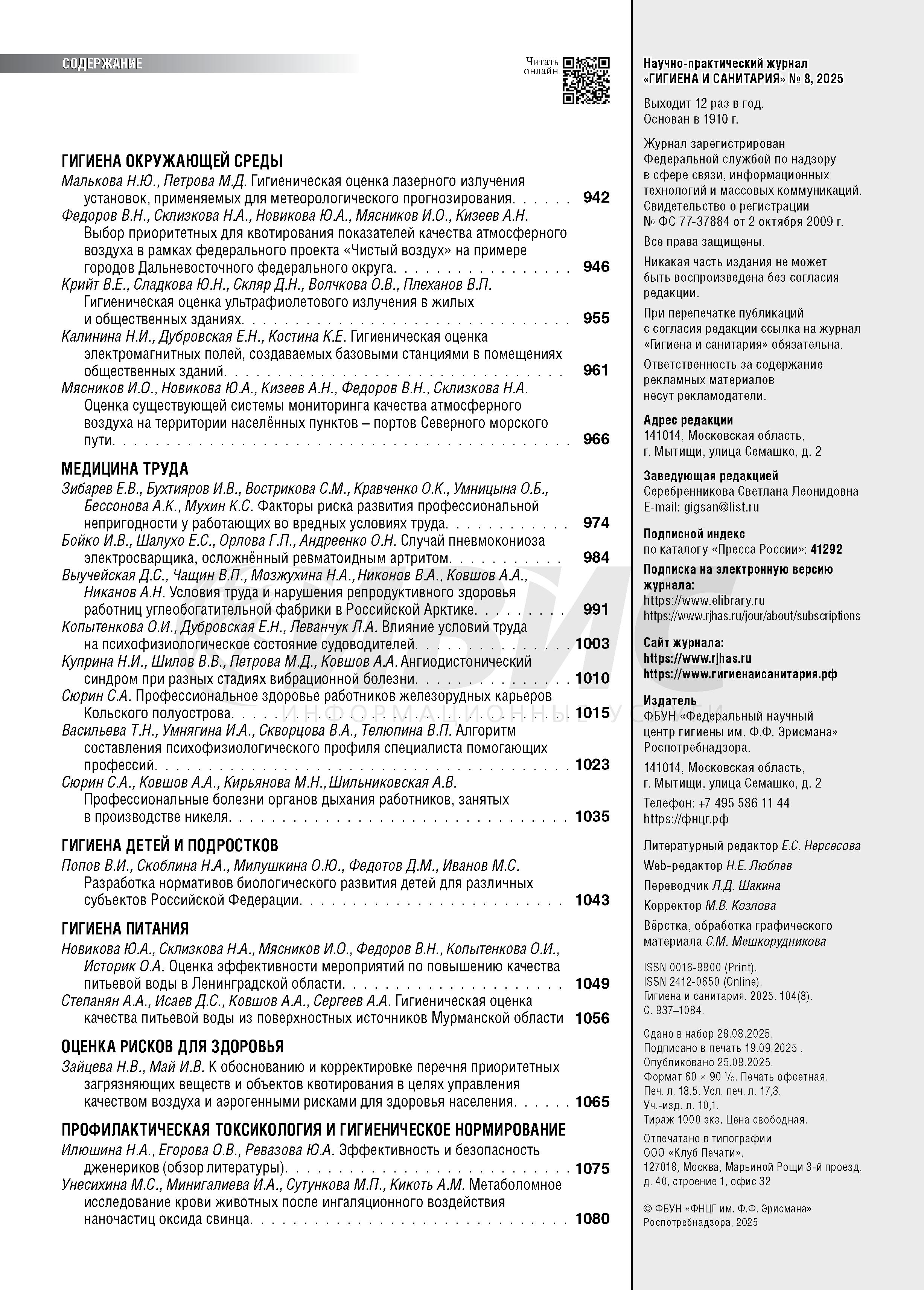 Гигиена и санитария 2025 N 8           |
