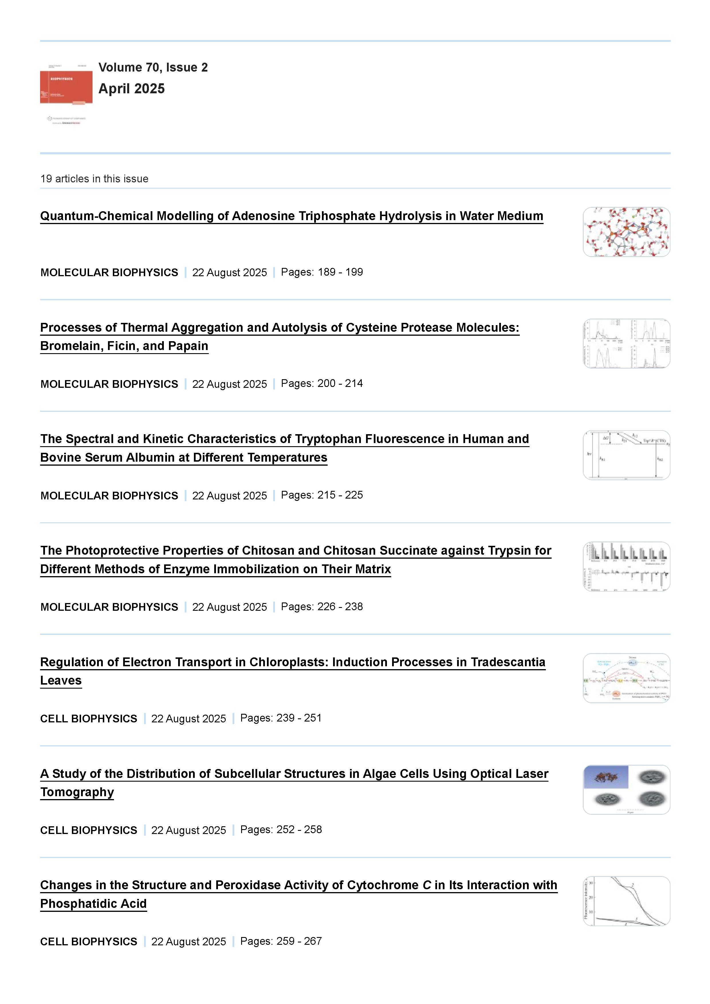 Biophysics 2025 Vol. 70 Is. 2           |