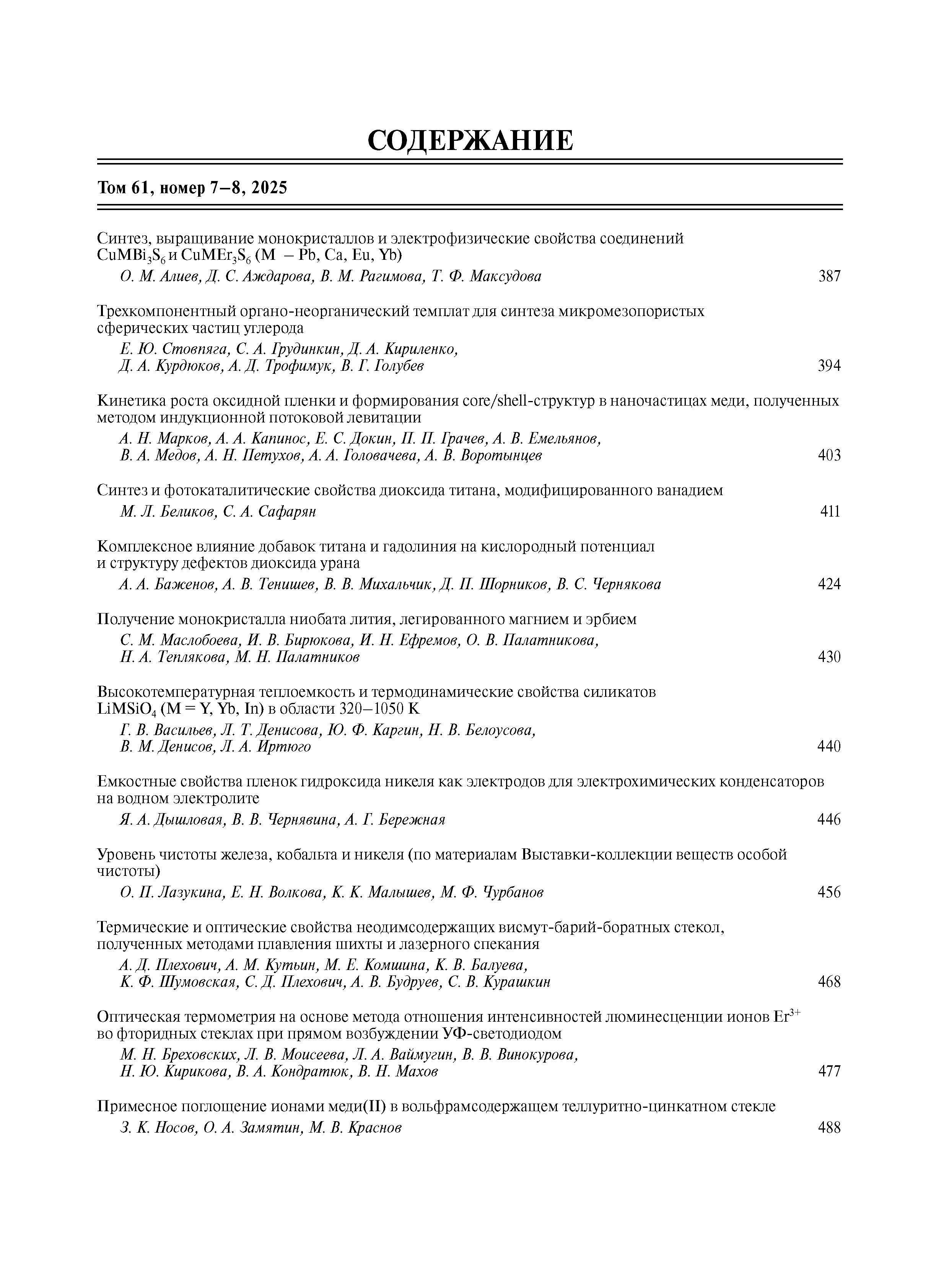 Неорганические материалы 2025 Т.61 № 7-8 |