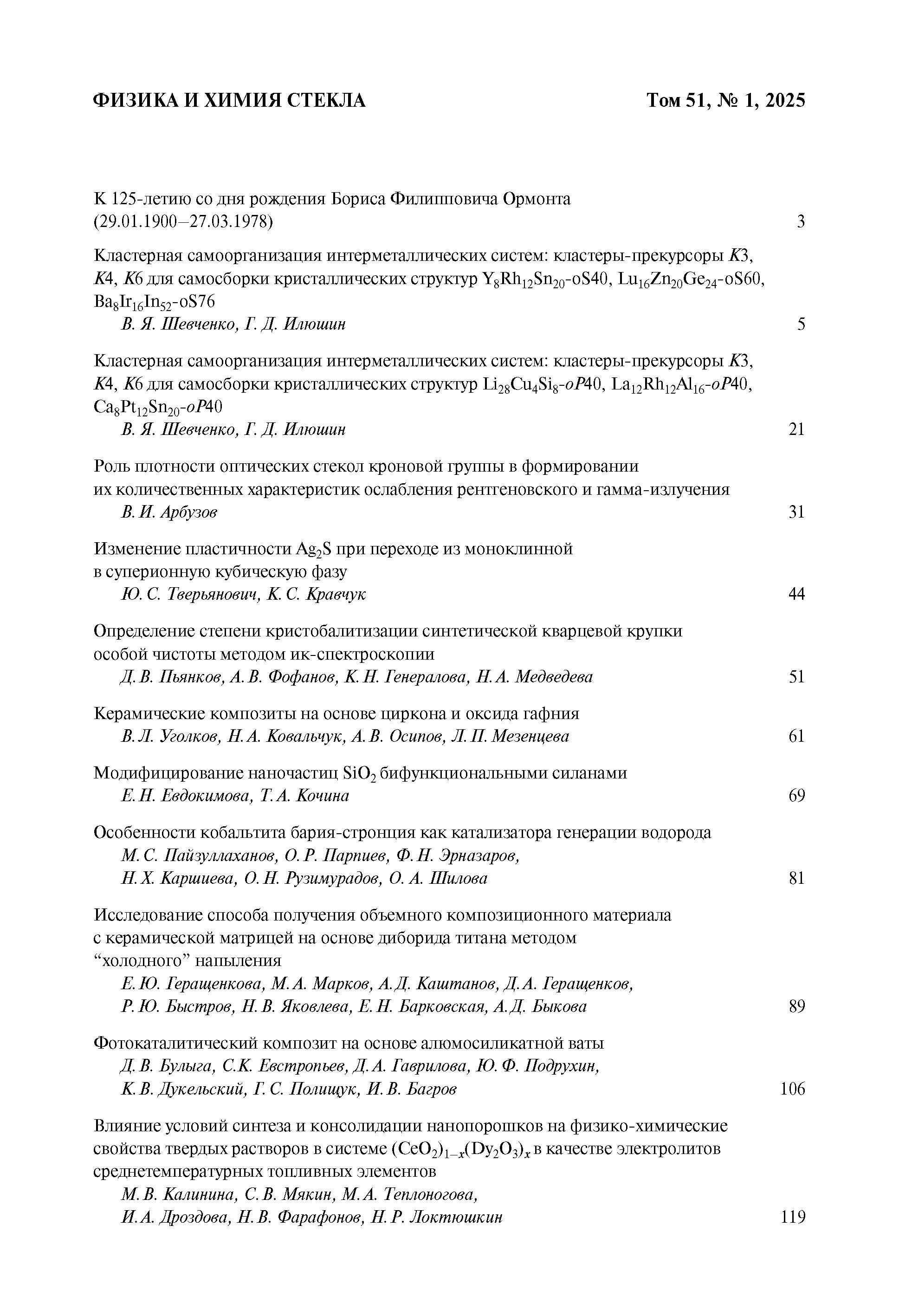 Физика и химия стекла 2025 Т. 51 № 1 |