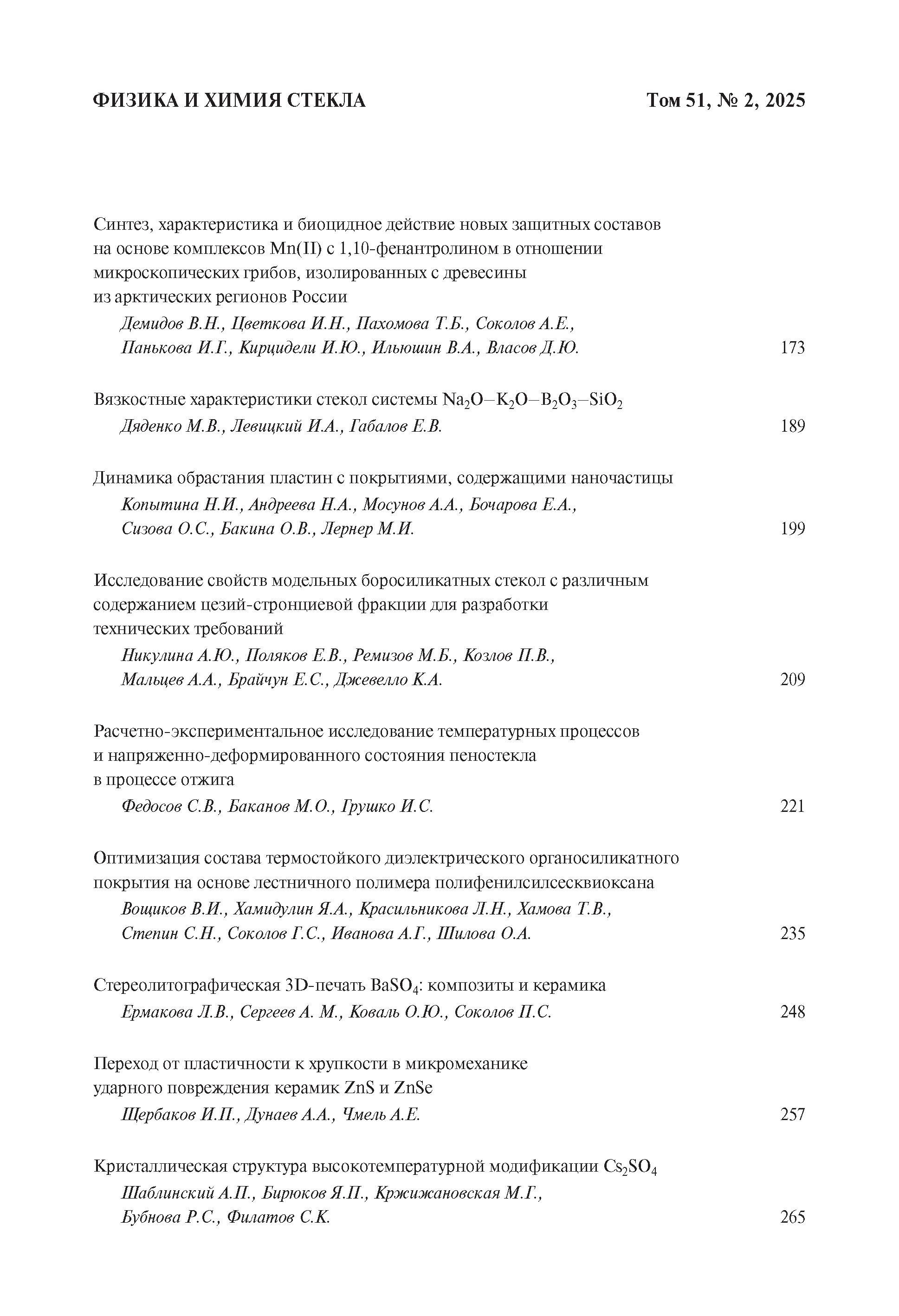 Физика и химия стекла 2025 Т. 51 № 2 |