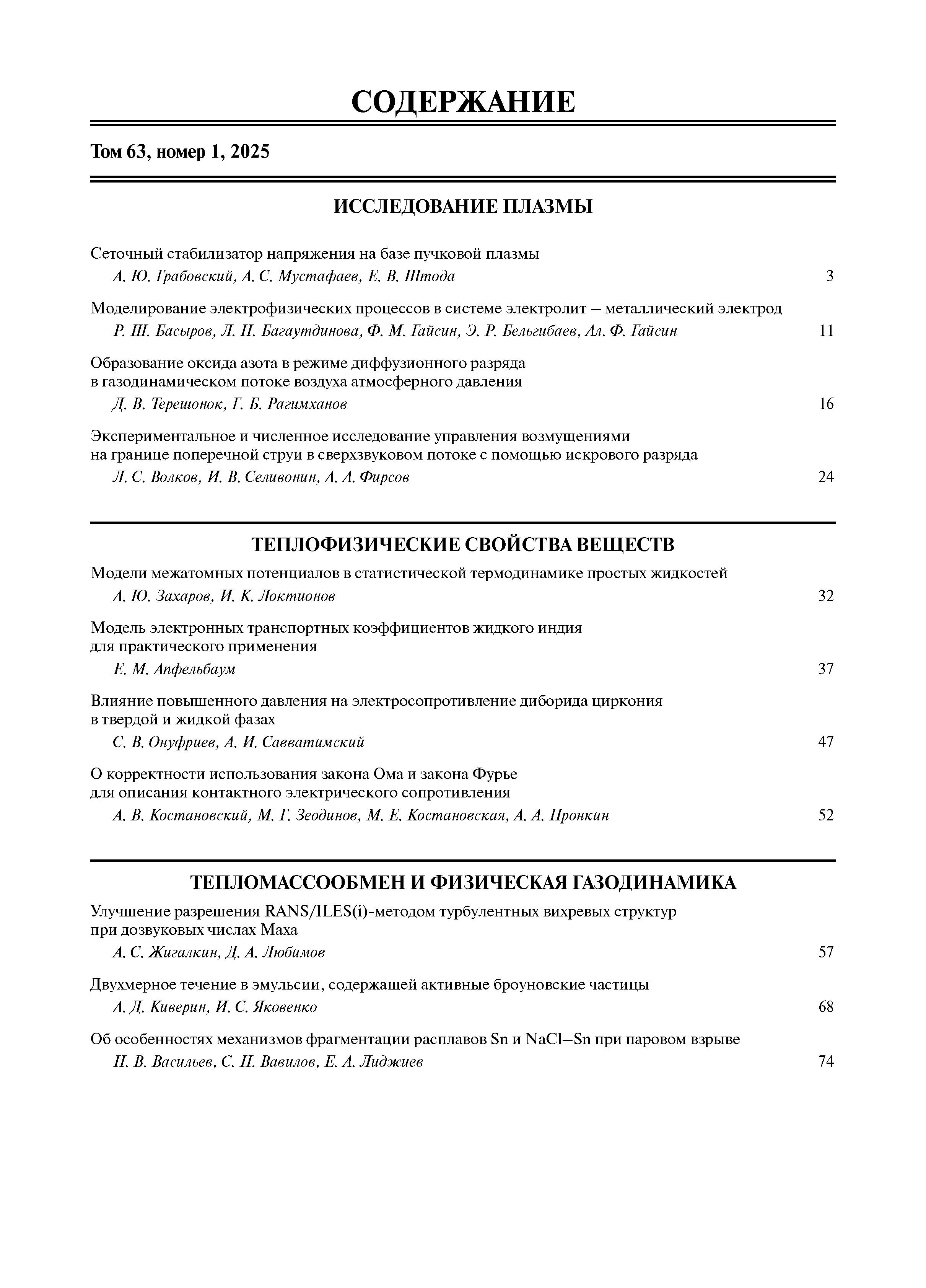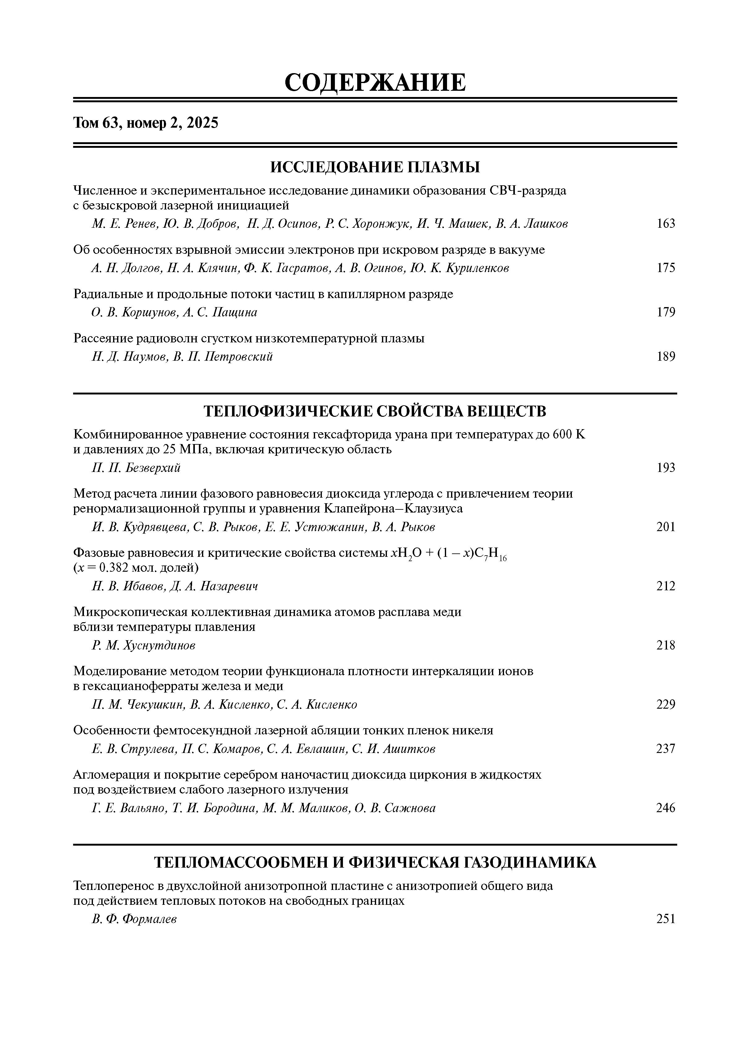 Теплофизика высоких температур 2025 Т.63 № 2 |
