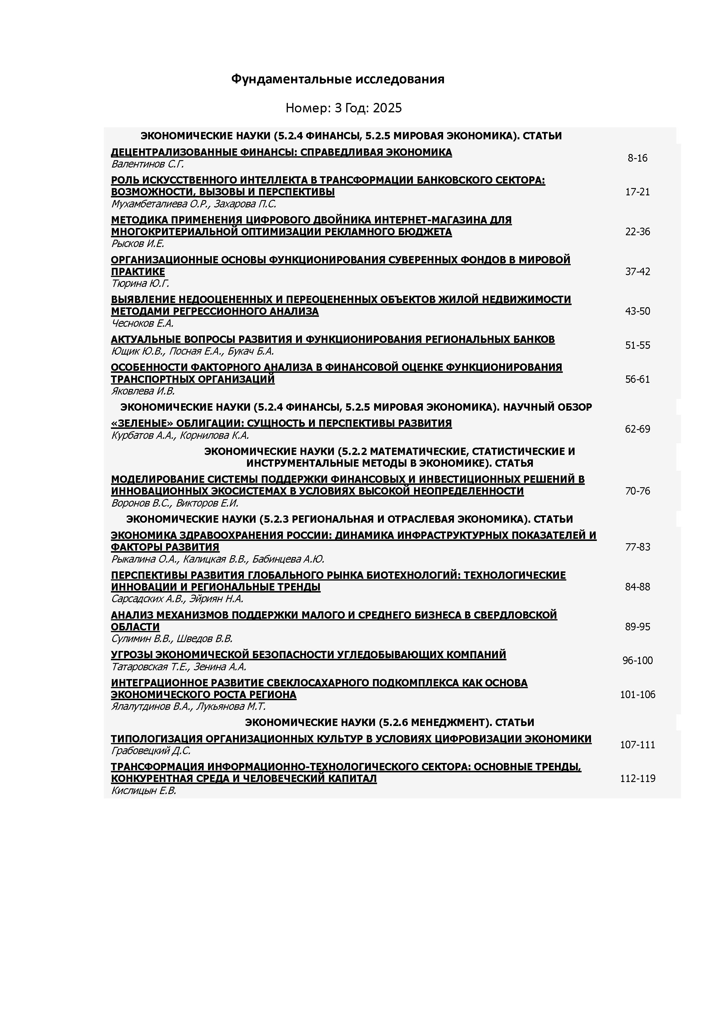 Фундаментальные исследования 2025 N 3 | Фундаментальные исследования 2025 N 3 | 2025 | 3 |