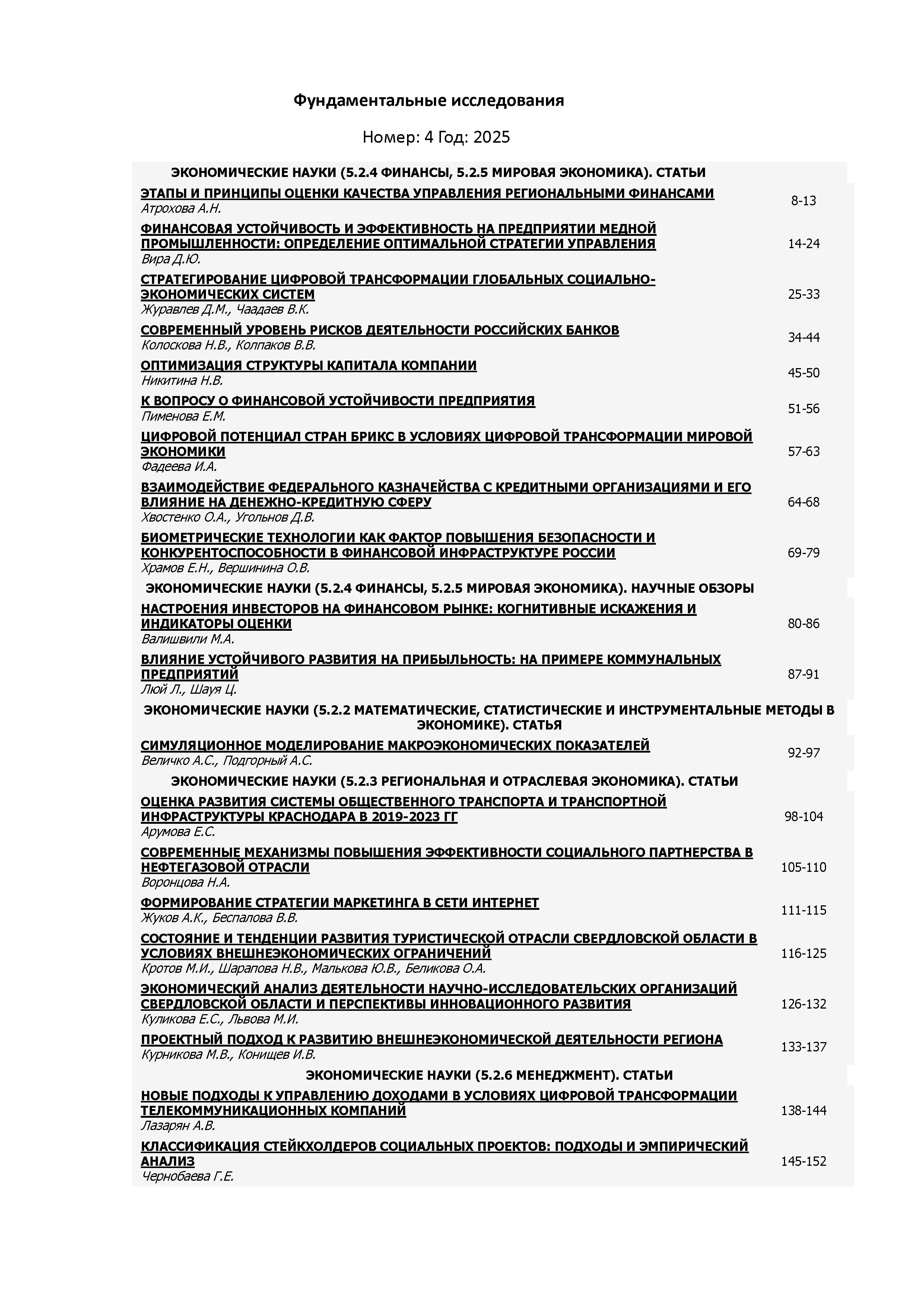 Фундаментальные исследования 2025 N 4 | Фундаментальные исследования 2025 N 4 | 2025 | 4 |