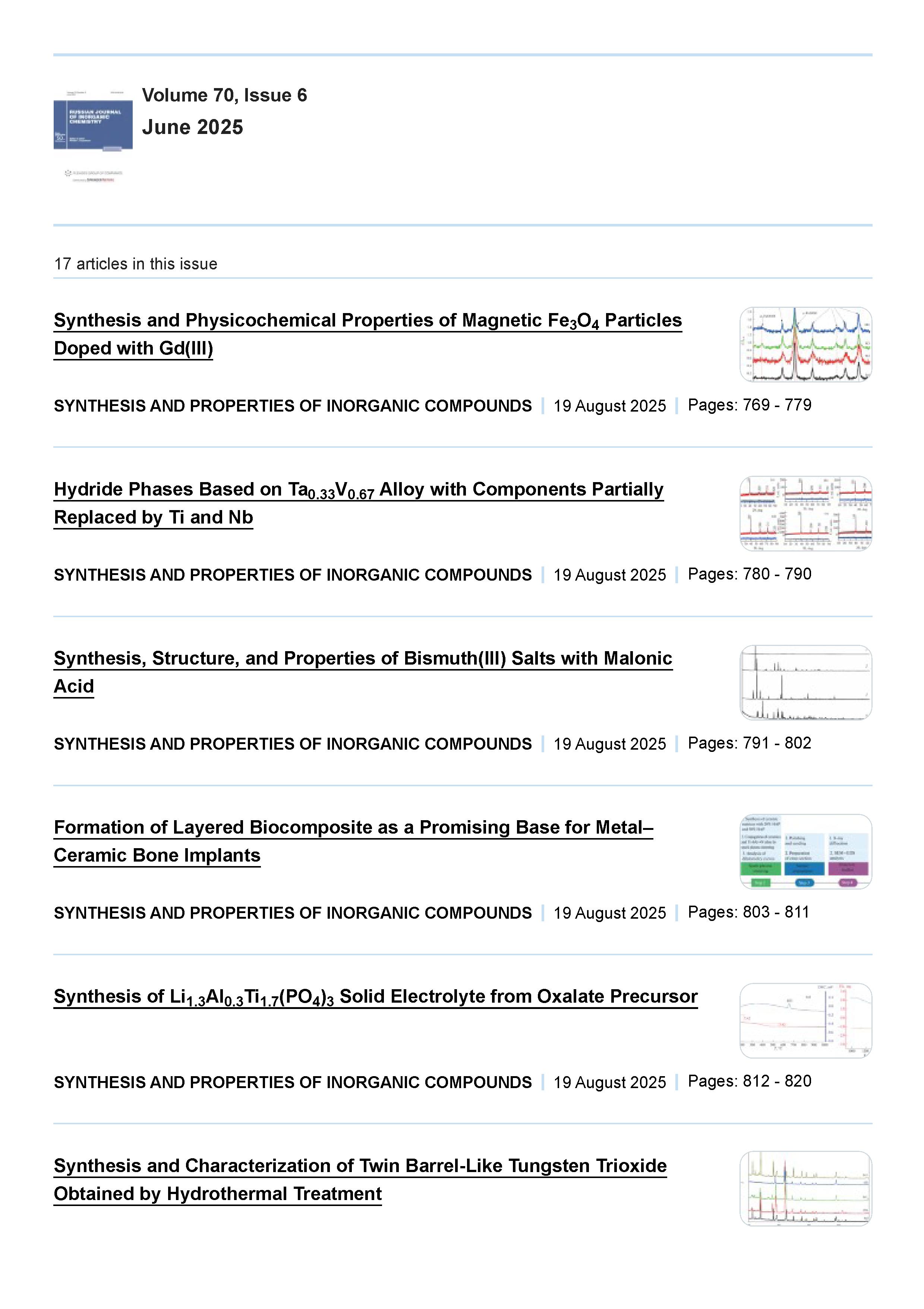 Russian Journal of Inorganic Chemistry 2025 Vol. 70 № 6 |