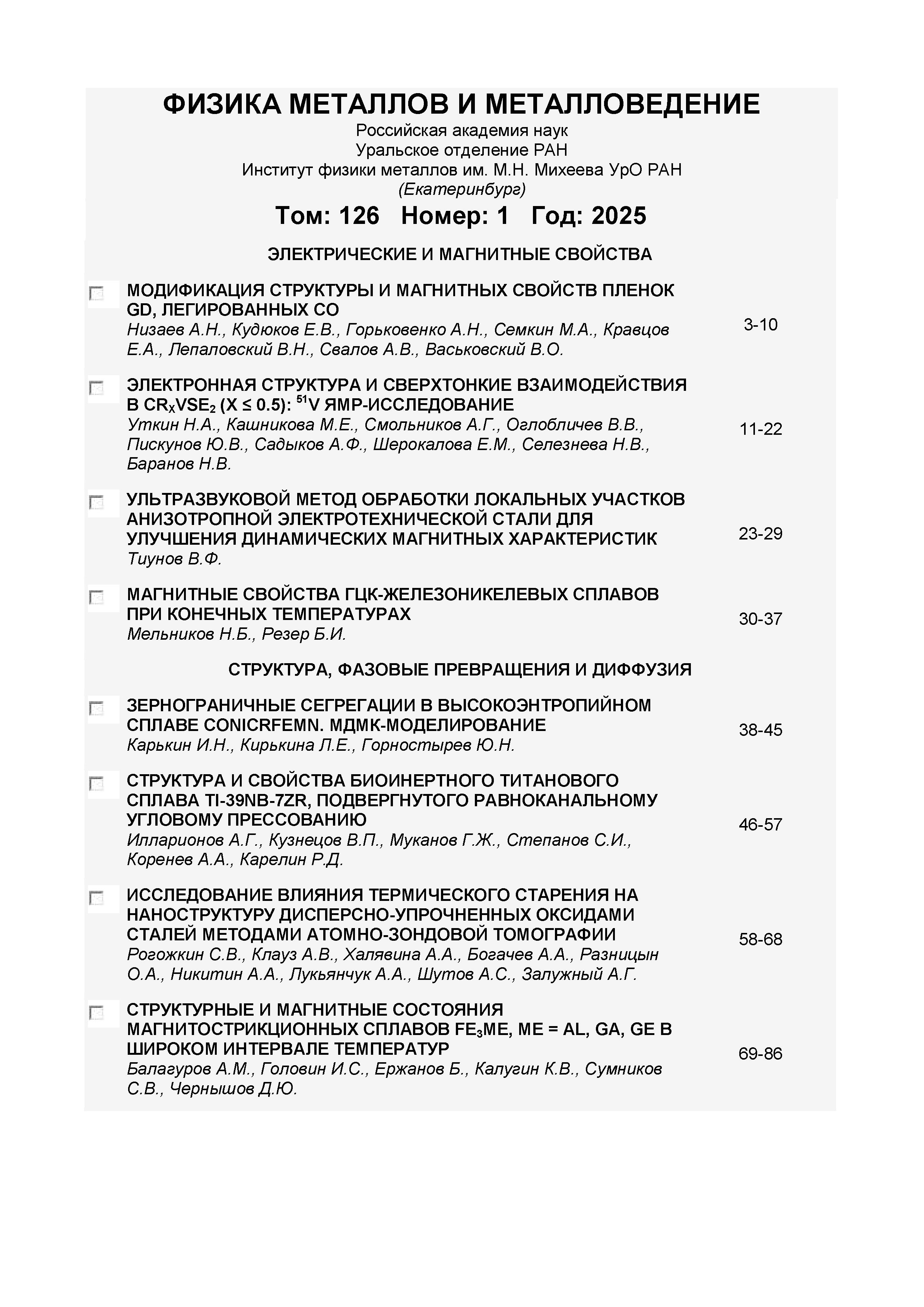 Физика металлов и металловедение 2025 Т.126 № 1 | Физика металлов и металловедение 2025 Т.126 № 1 | 2025 | 1 |