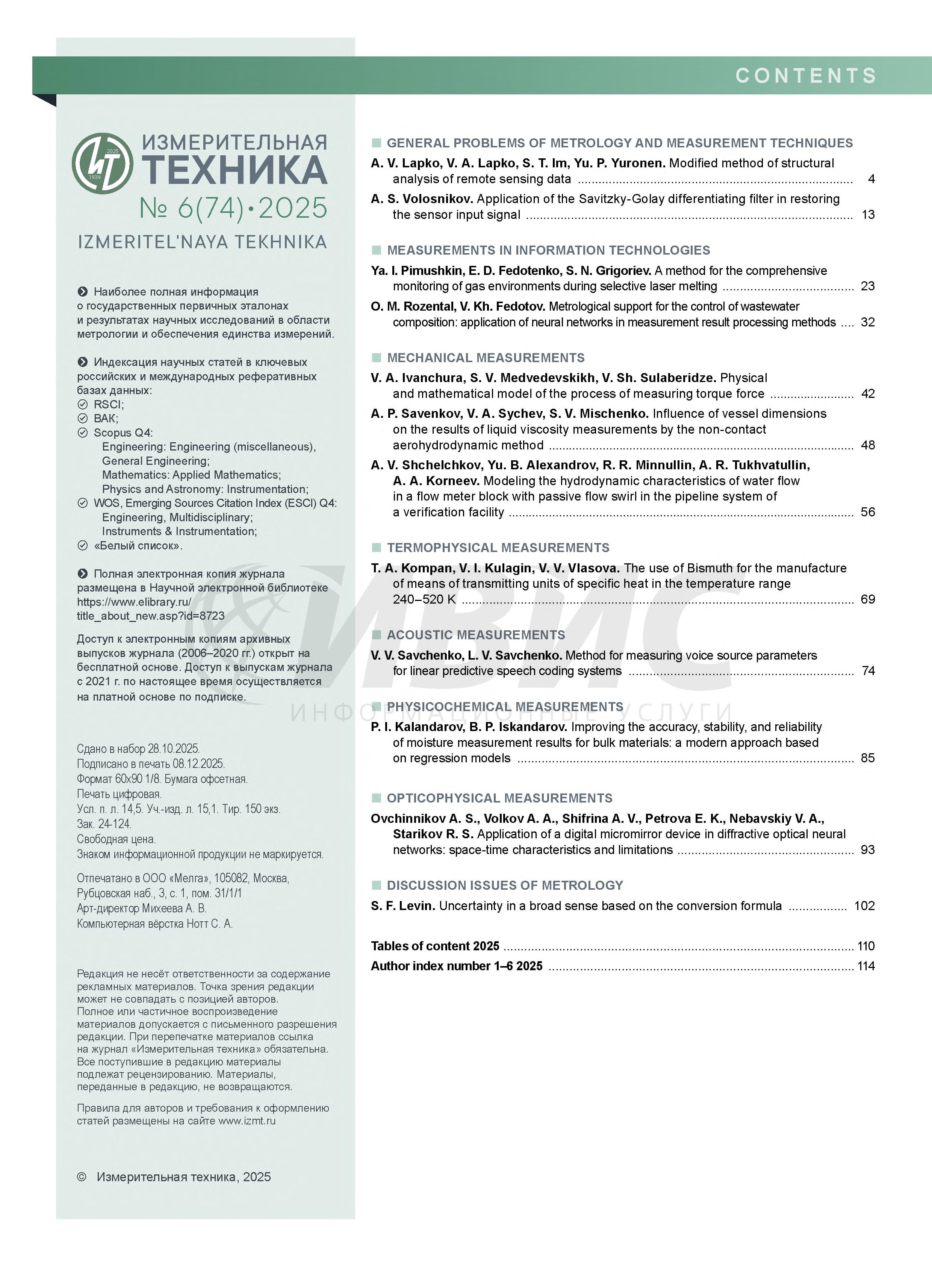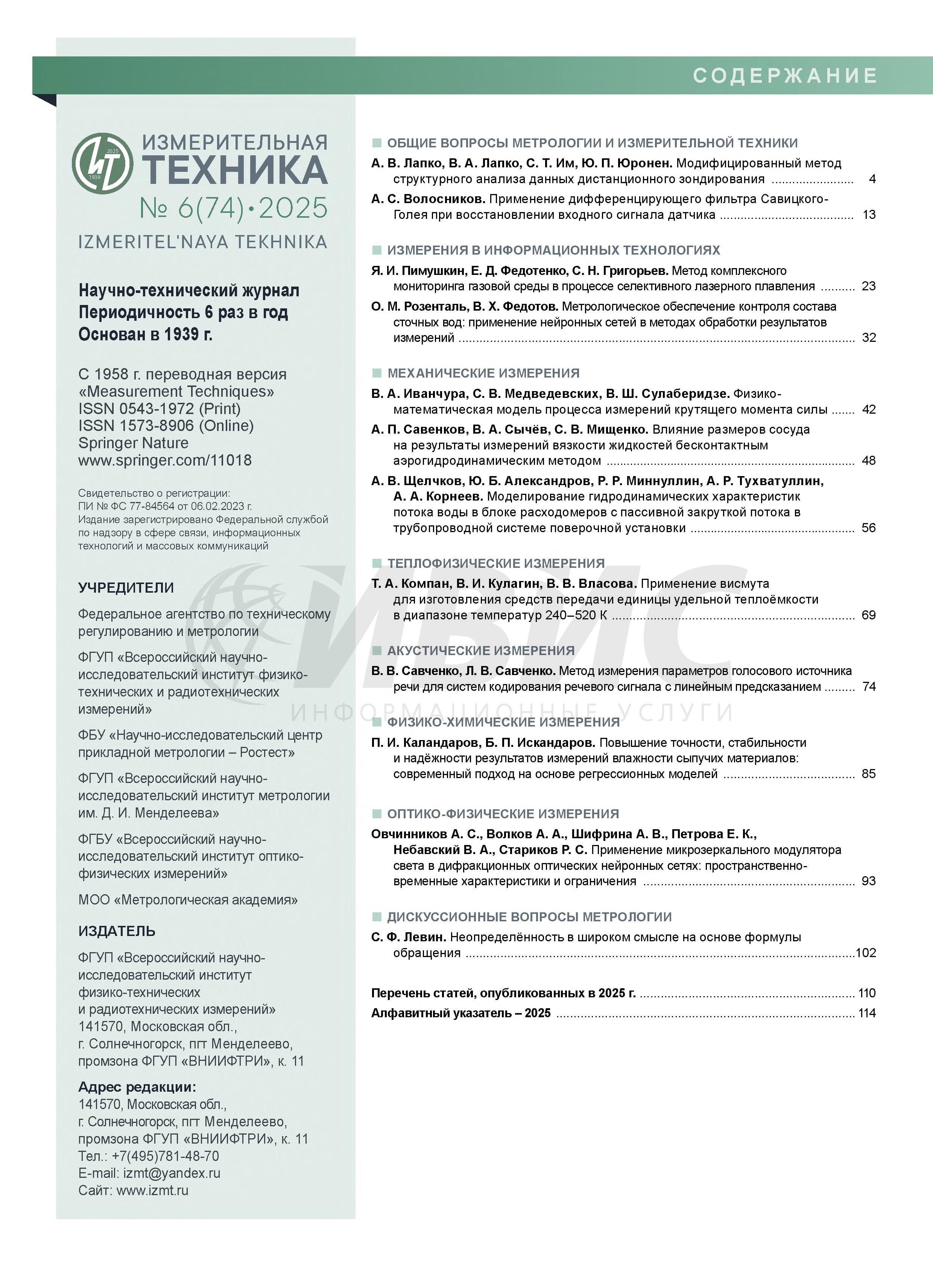 Измерительная техника 2025 № 6 | Измерительная техника 2025 № 6 | 2025 | 6 |