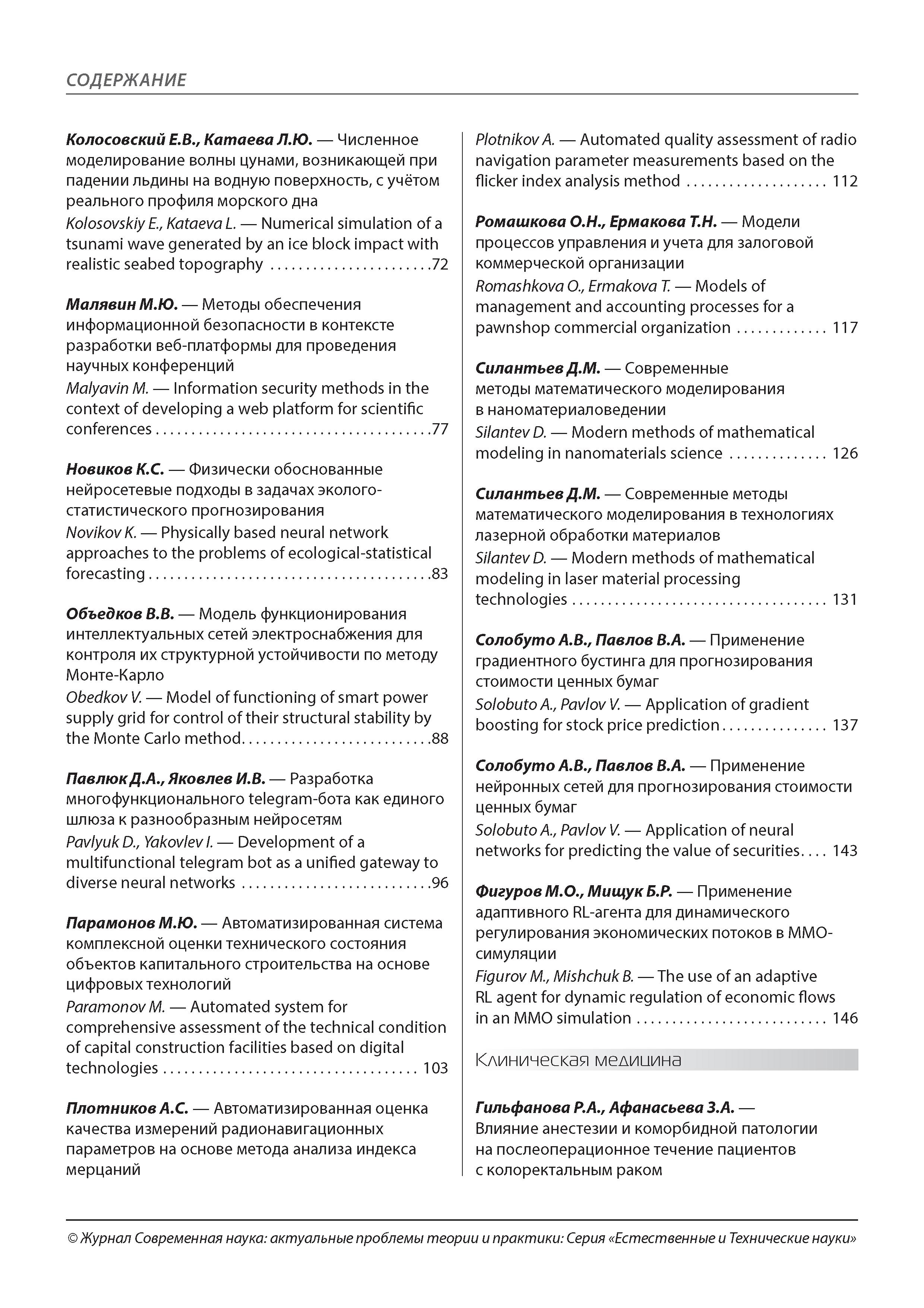 Современная наука: актуальные проблемы теории и практики. Сер. Естественные и технические науки 2025 N7 |