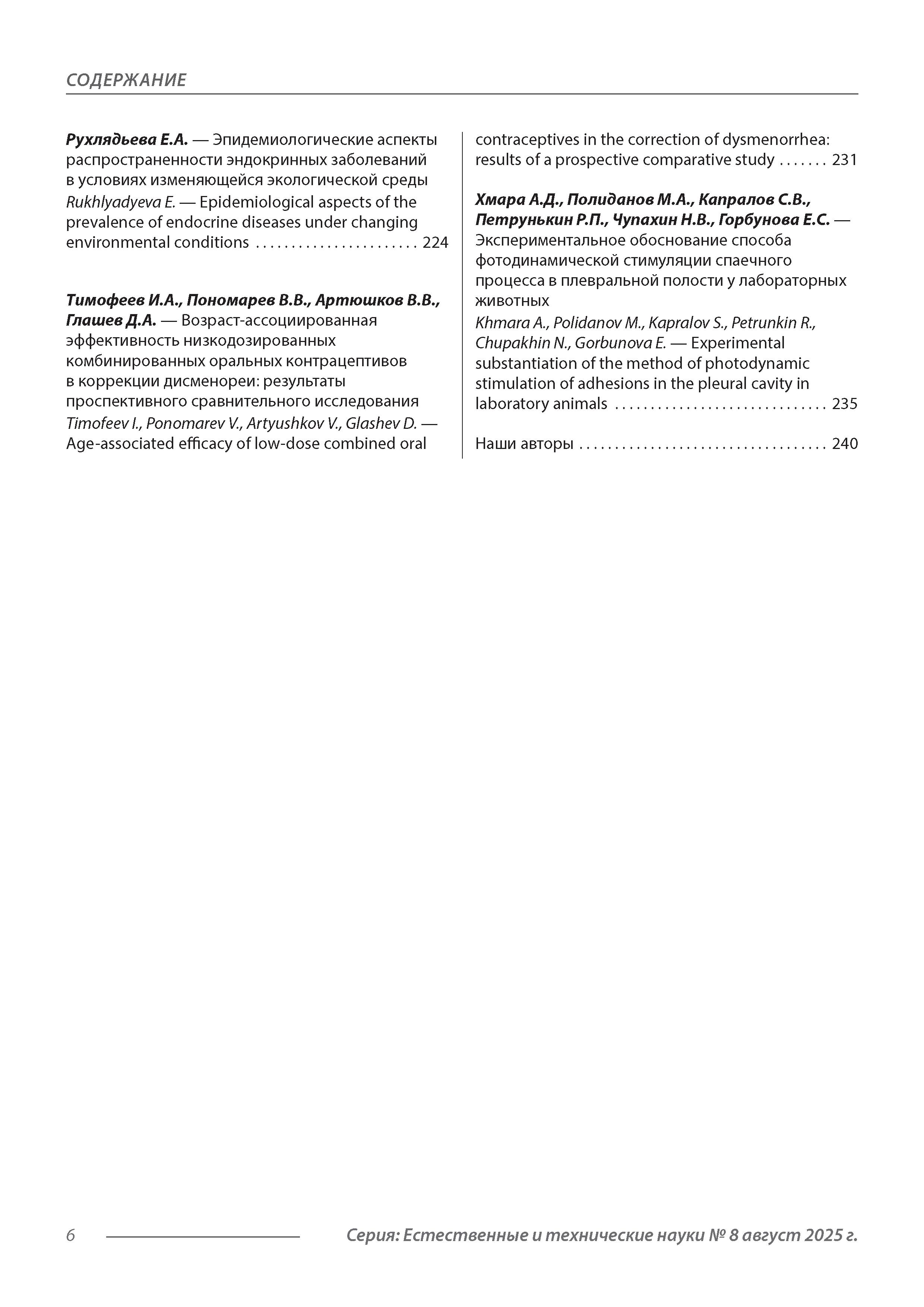 Современная наука: актуальные проблемы теории и практики. Сер. Естественные и технические науки 2025 N8 |