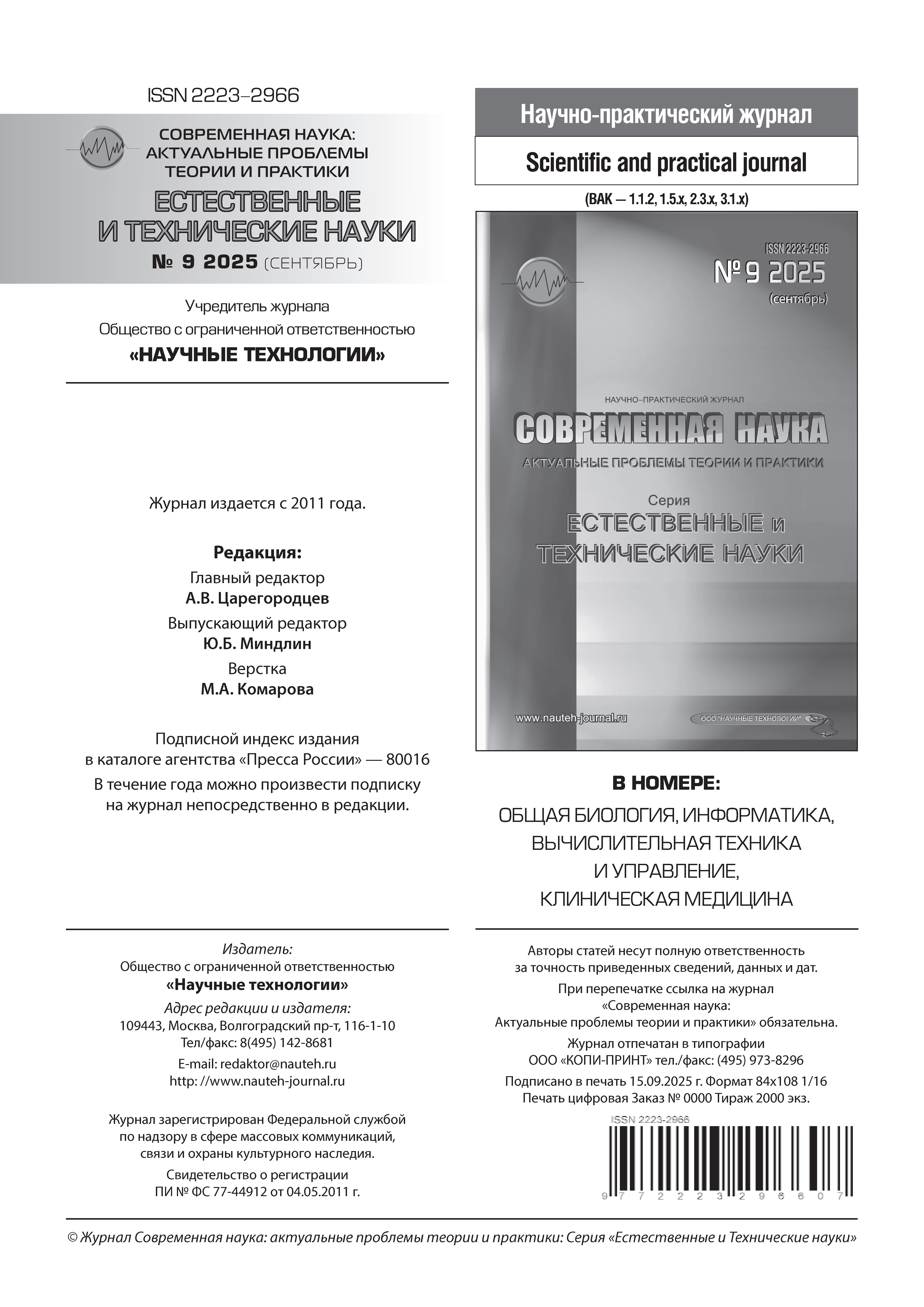 Современная наука: актуальные проблемы теории и практики. Сер. Естественные и технические науки 2025 N9 |