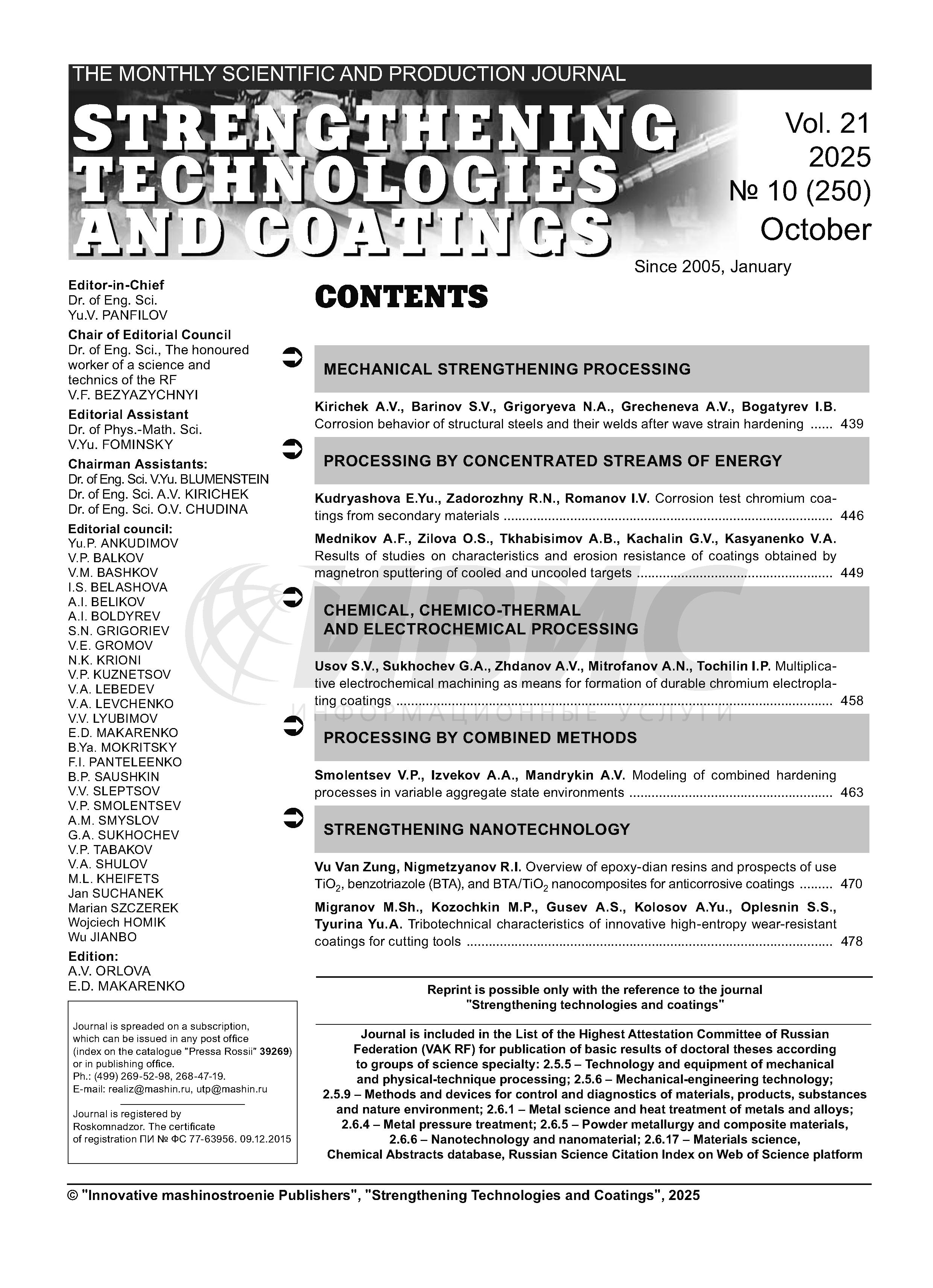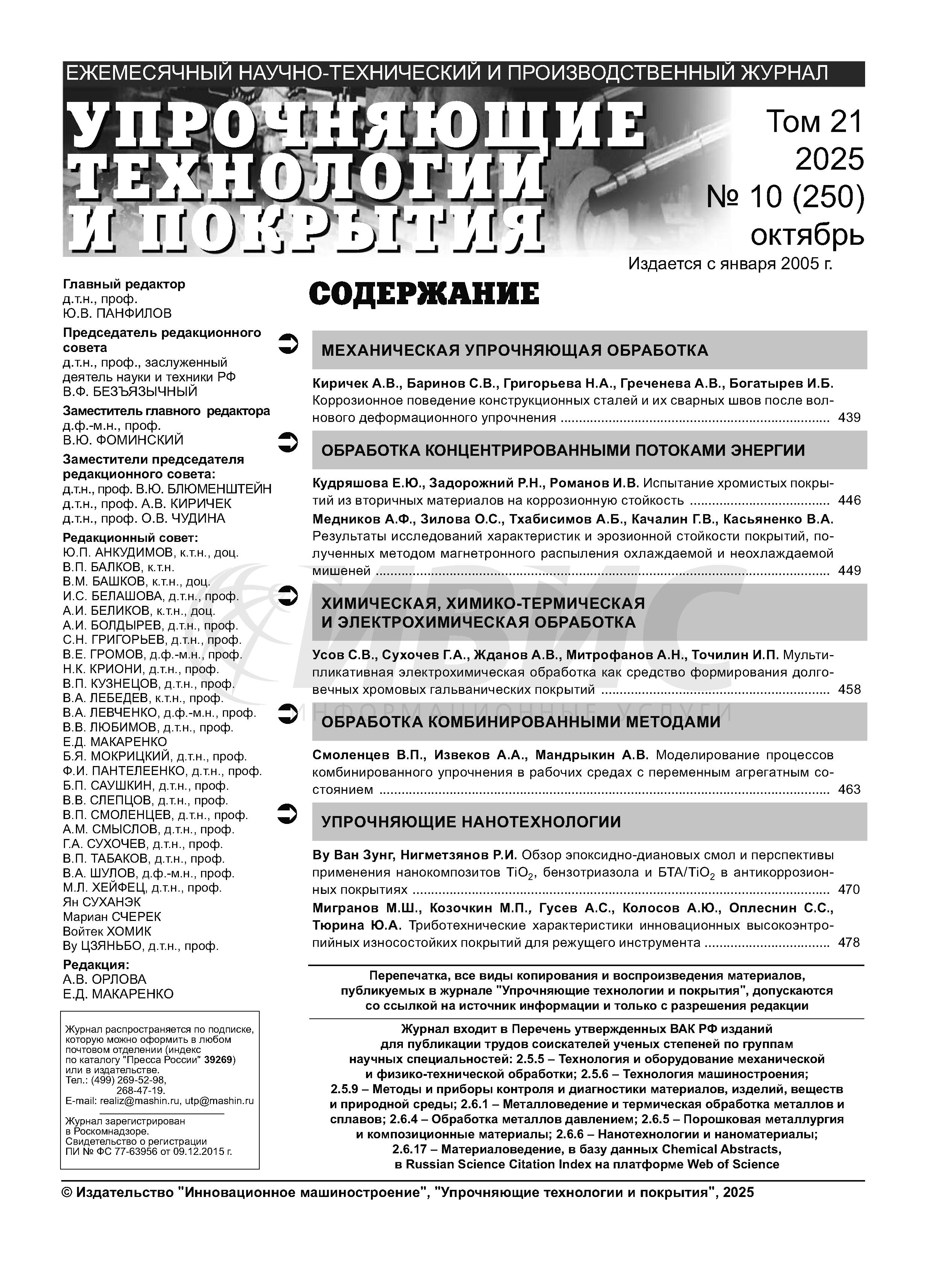 Упрочняющие технологии и покрытия 2025 N10 | Упрочняющие технологии и покрытия 2025 N10 | 2025 | 10 |