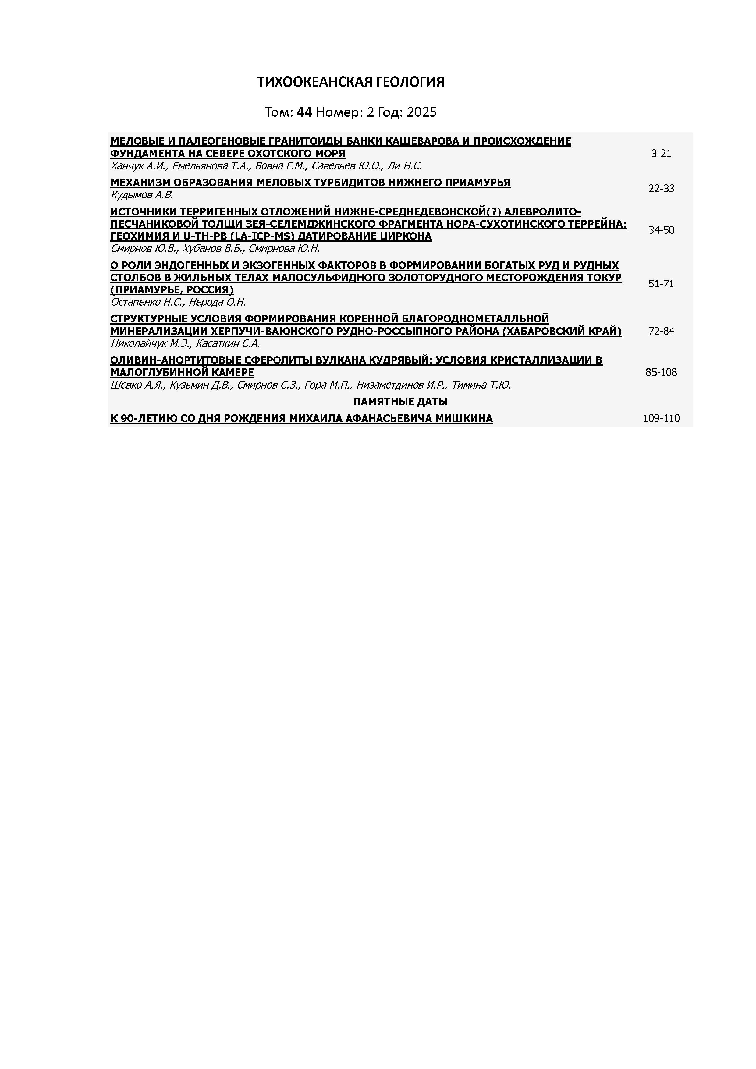 Тихоокеанская геология 2025 Т. 44 № 4 |