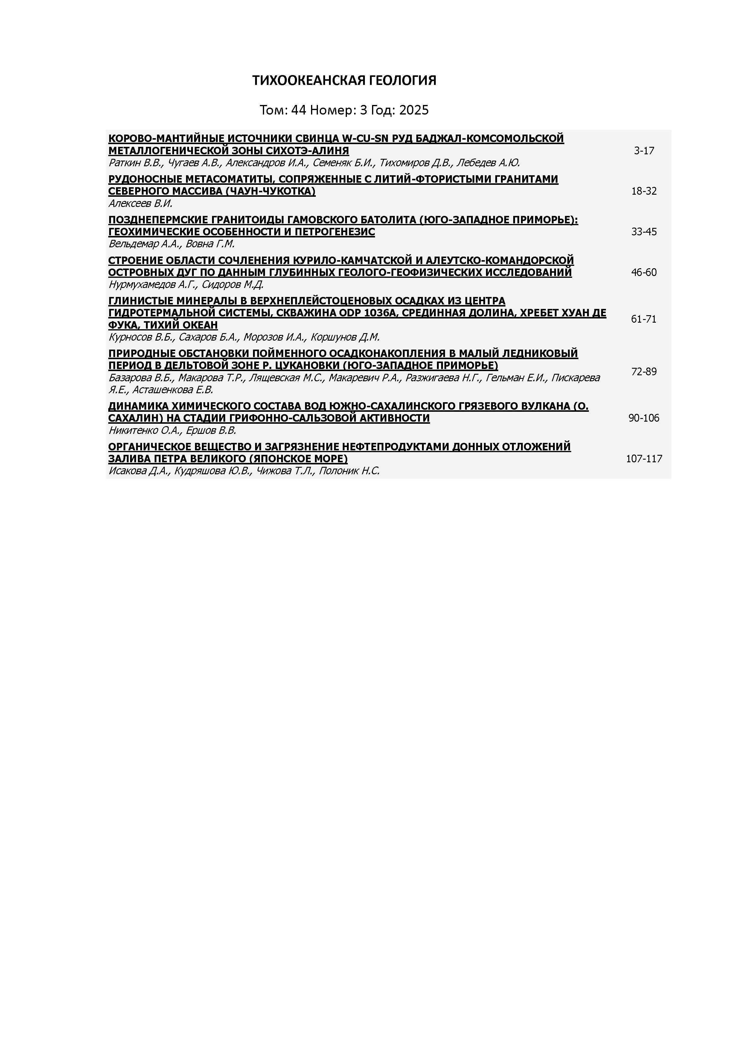 Тихоокеанская геология 2025 Т. 44 № 3 |
