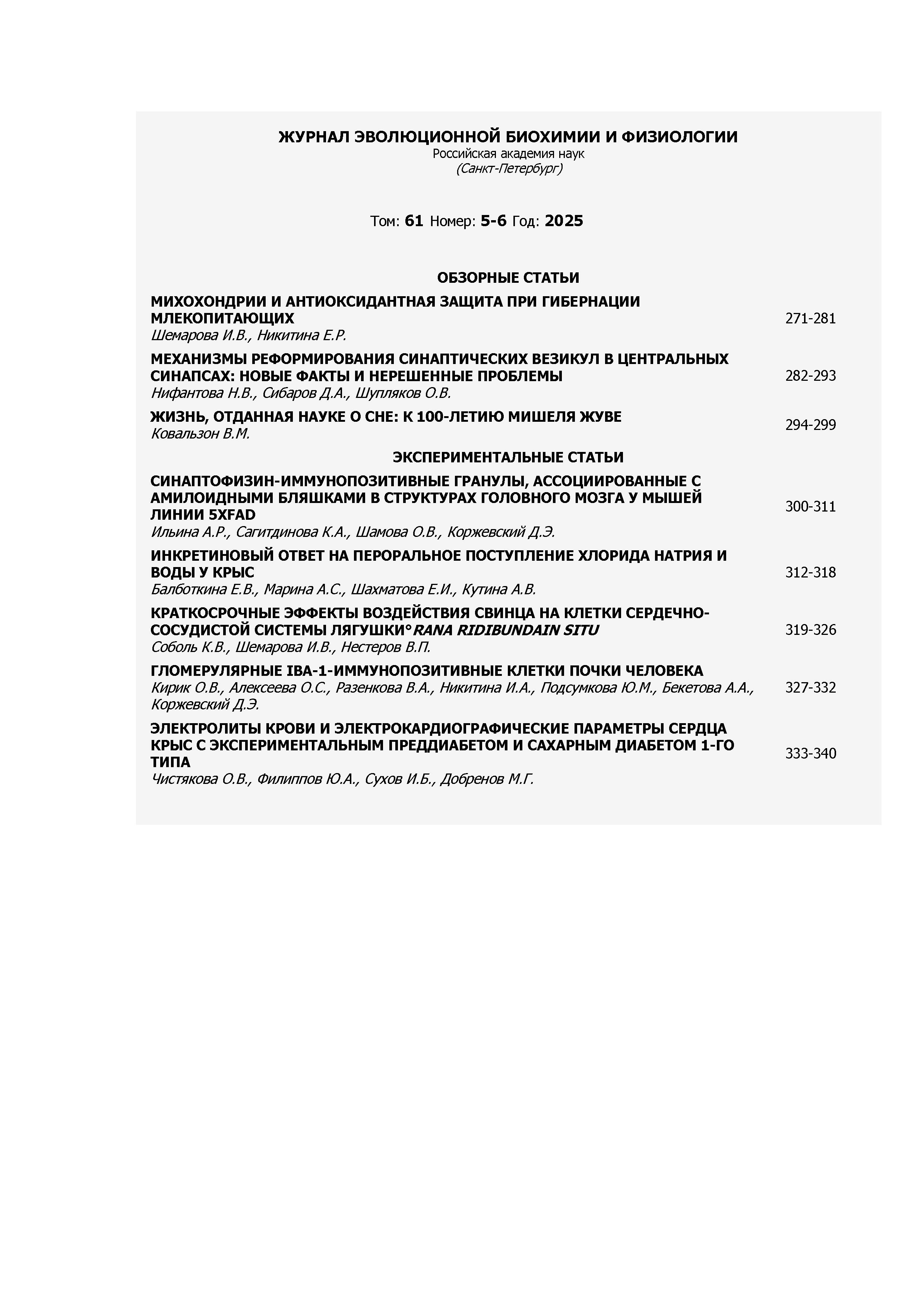Журнал эволюционной биохимии и физиологии 2025 Т.61 N 5-6 |