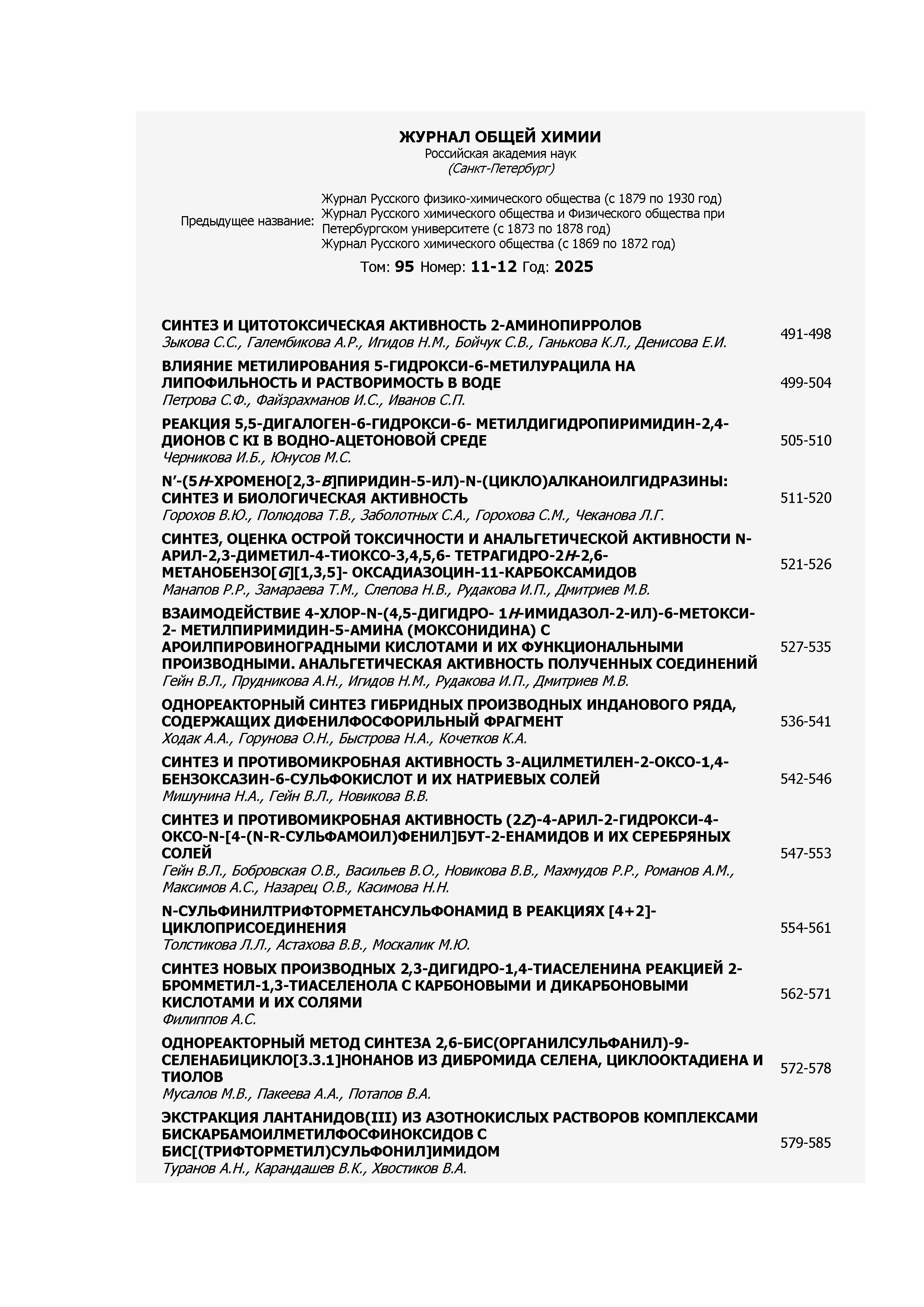 Журнал общей химии 2025 Т.95 №11-12 |