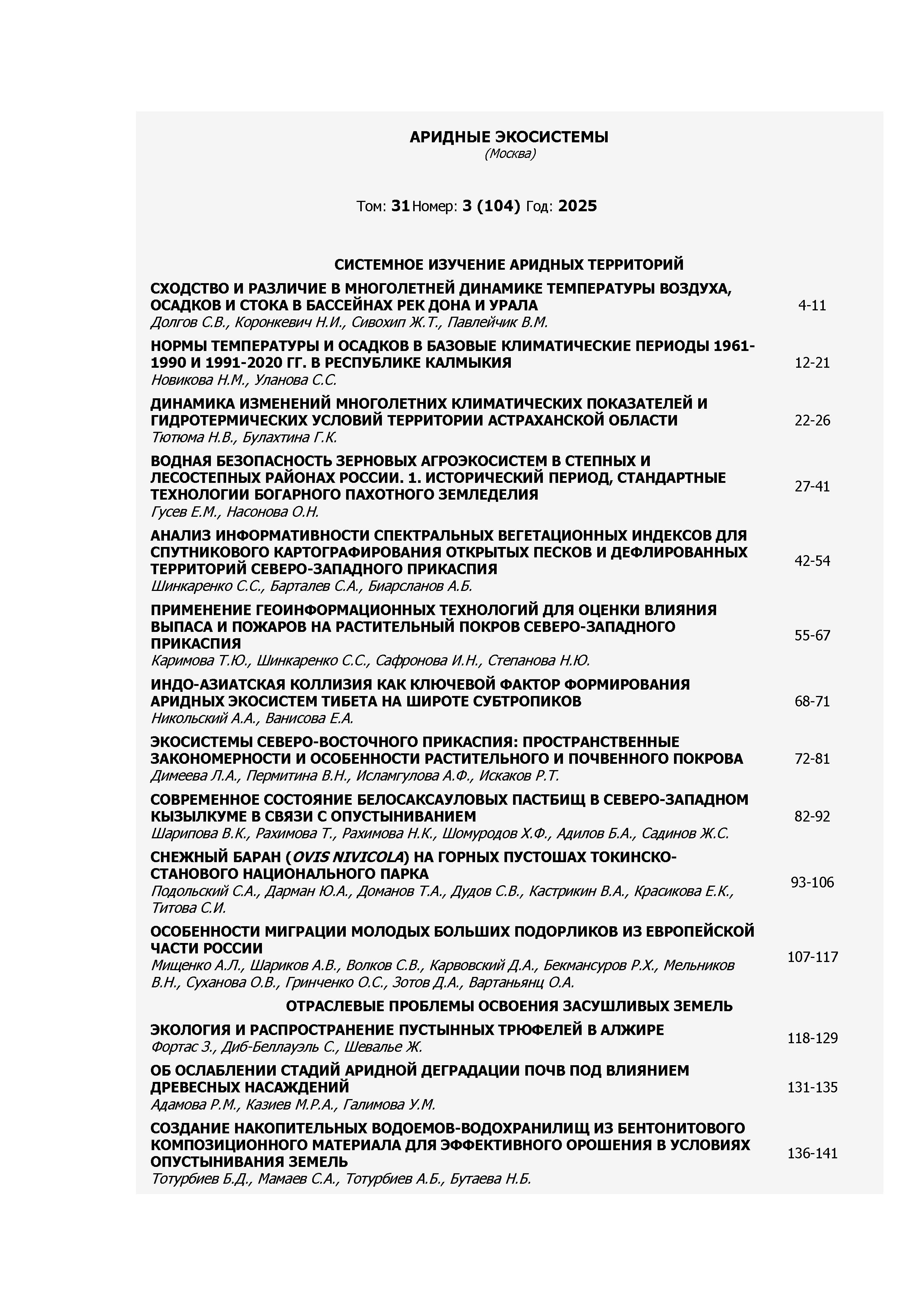 Аридные экосистемы 2025 N 3 | Аридные экосистемы 2025 N 3 | 2025 | 3 |
