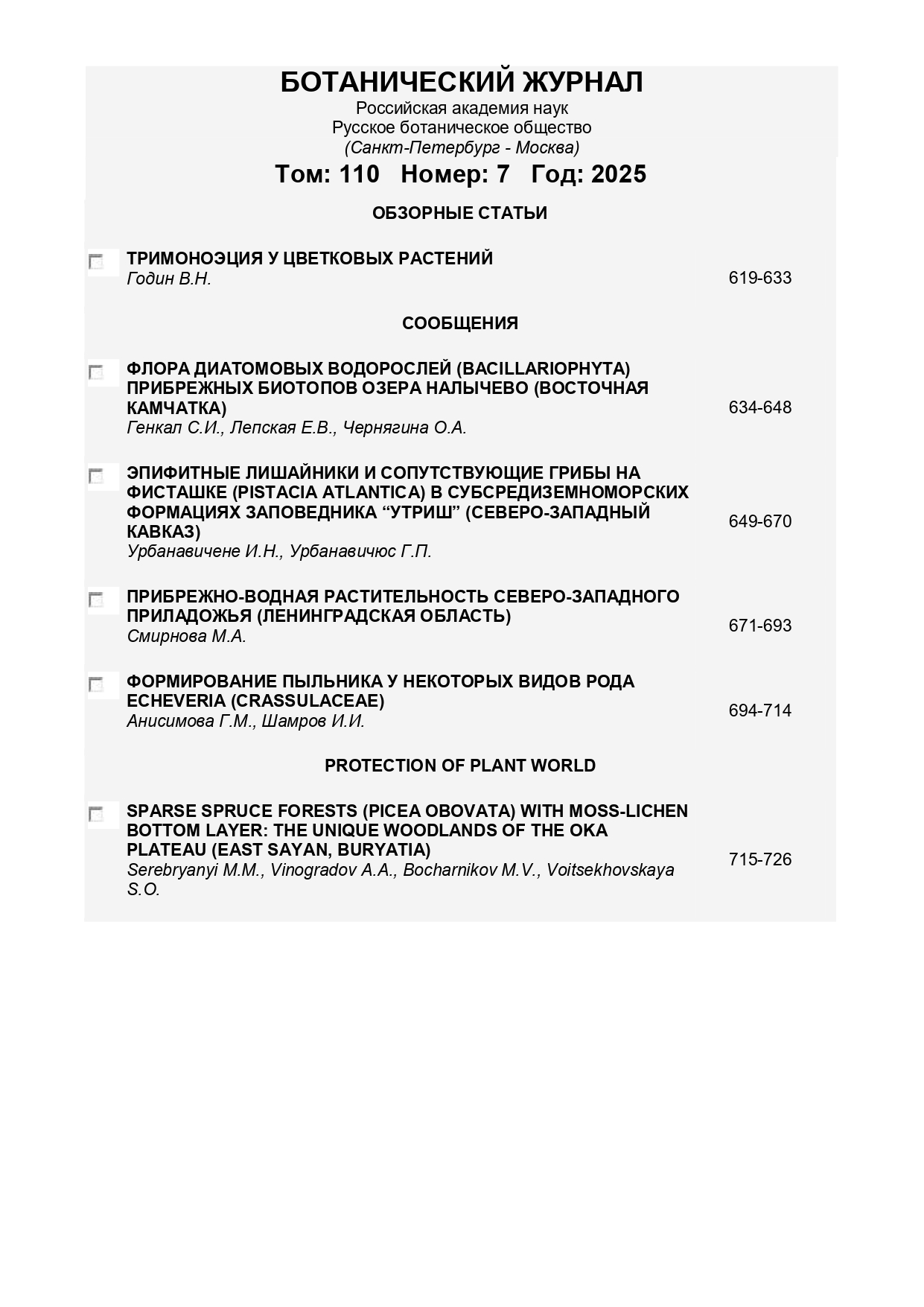 Ботанический журнал 2025 T.110 № 7 | Ботанический журнал 2025 T.110 № 7 | 2025 | 7 |