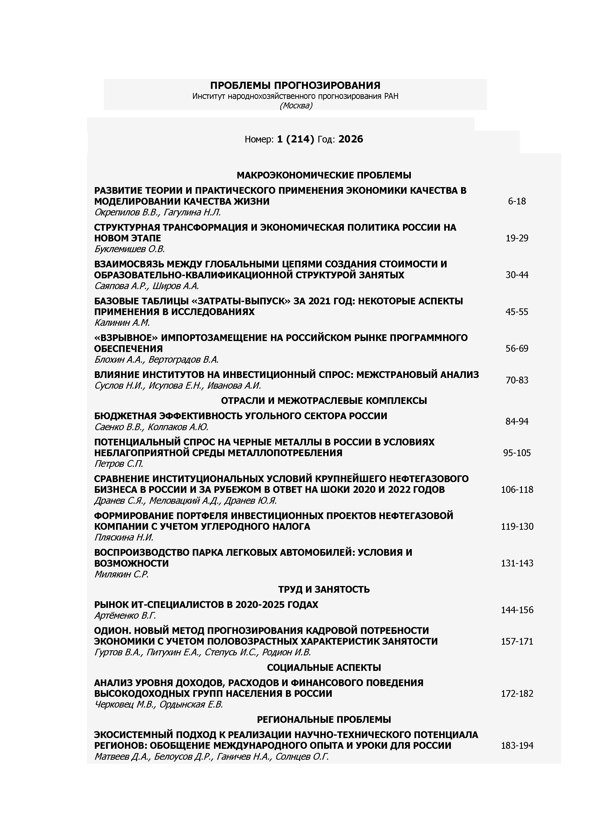 Проблемы прогнозирования 2026 N 2 |