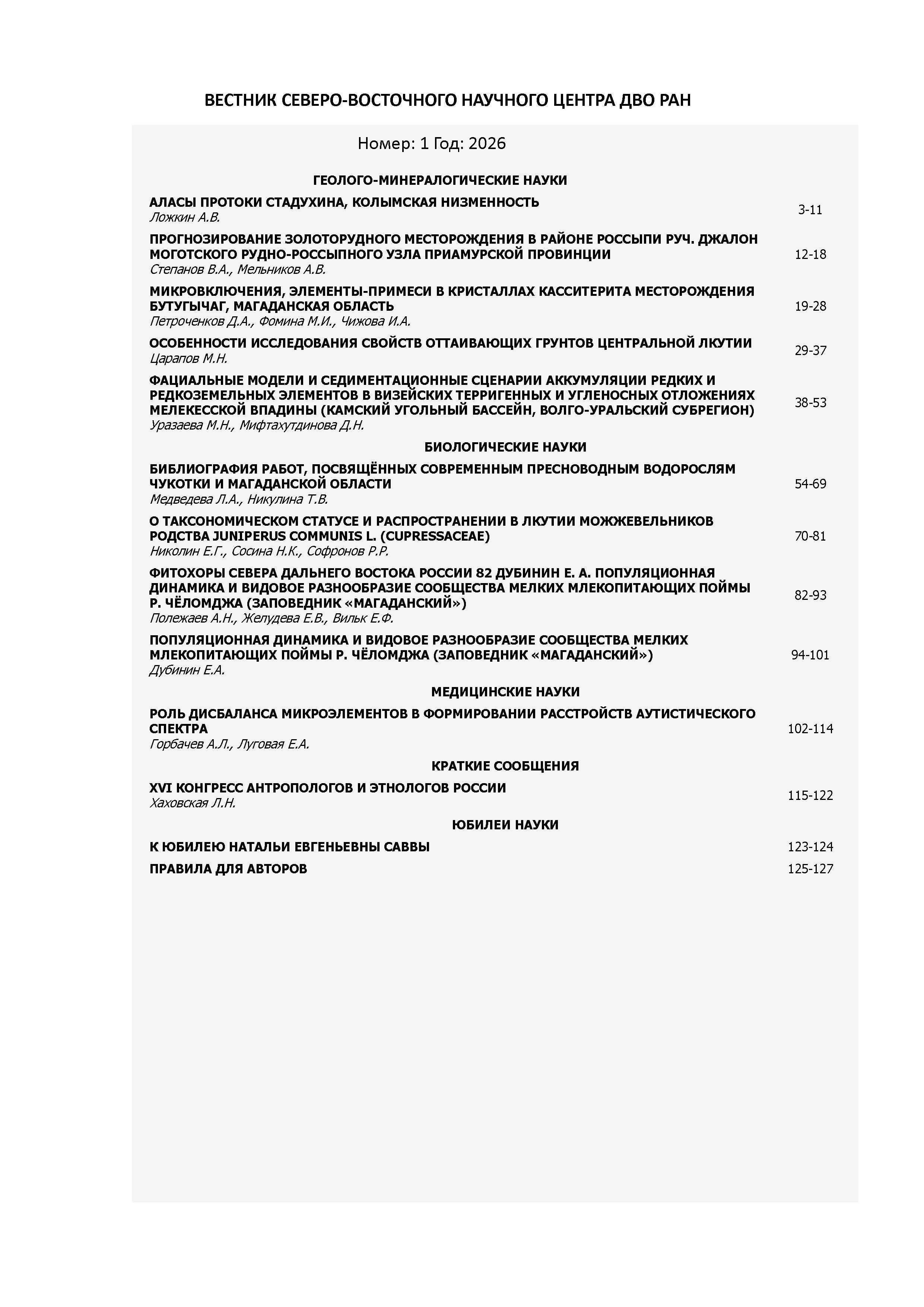 Вестник Северо-Восточного науч. центра ДВО РАН 2026 N 1 |