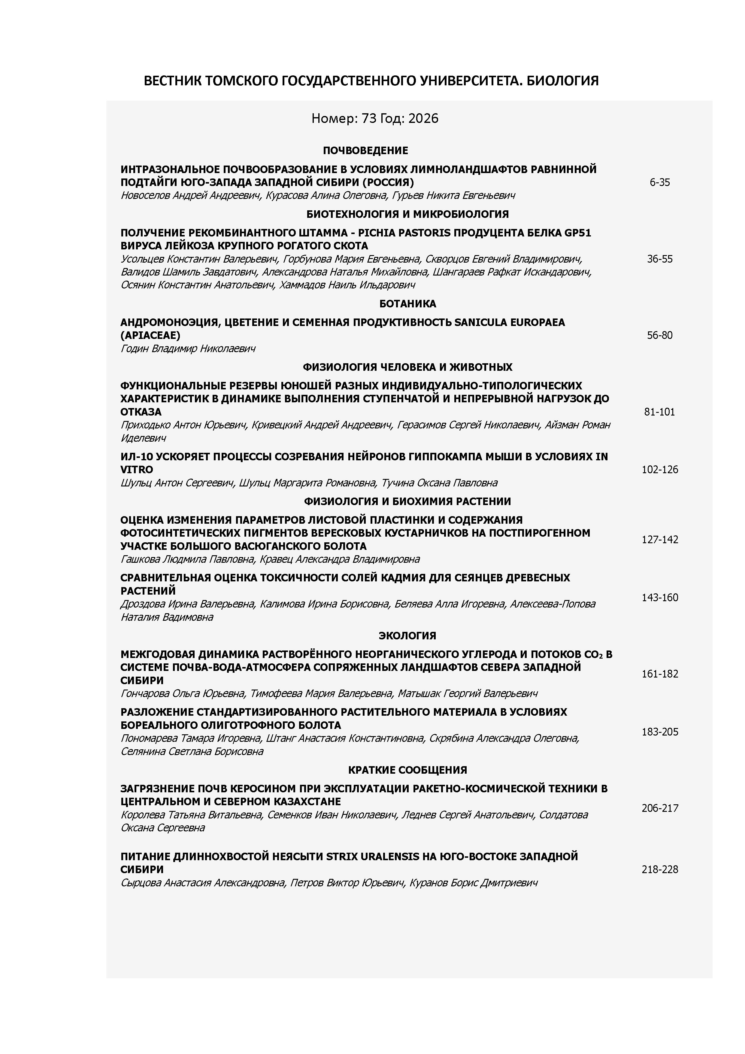 Вестник Томского государственного университета. Биология 2026 N 73 |
