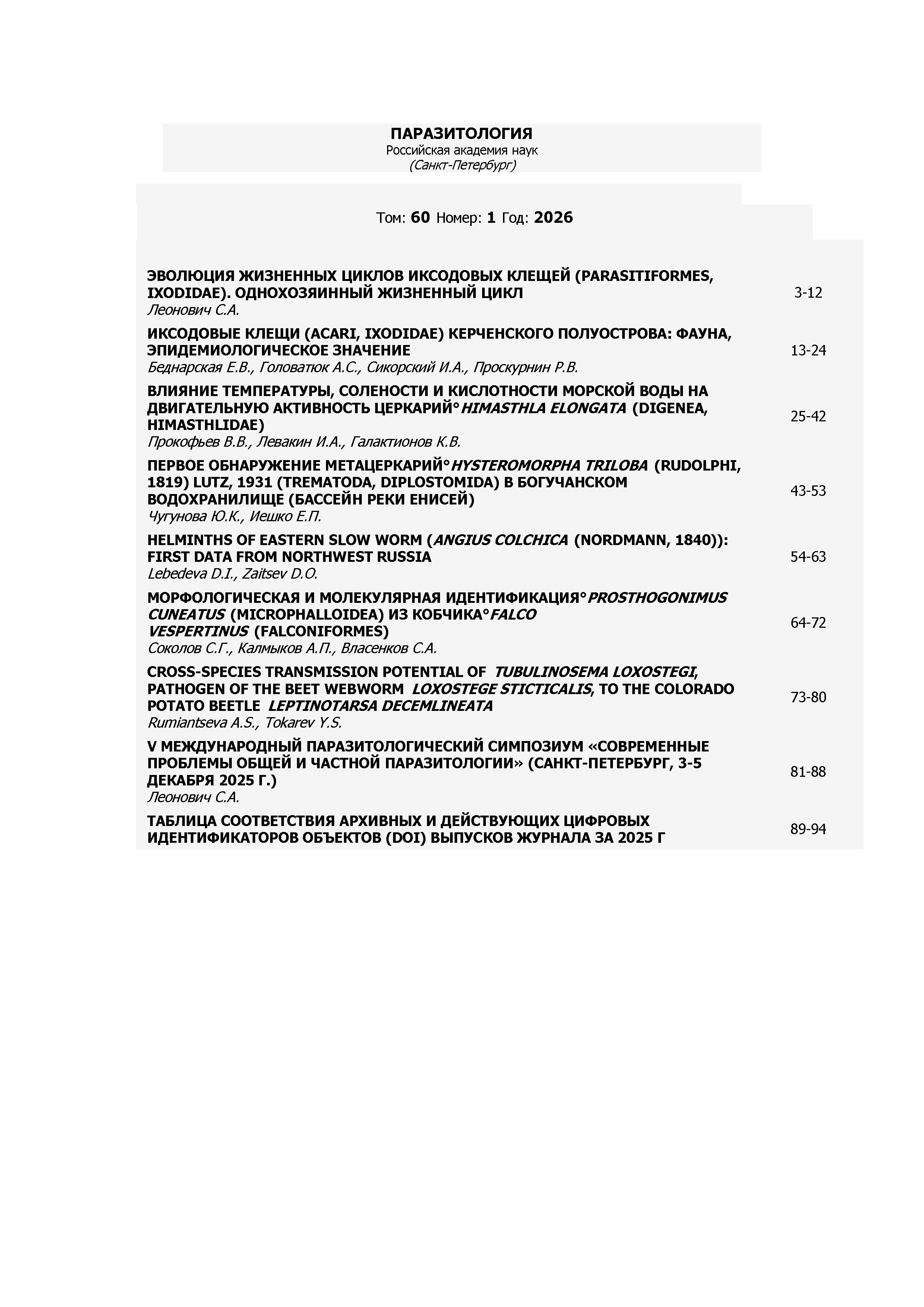 Паразитология 2026 Т.60 N 1 | Паразитология 2026 Т.60 N 1 | 2026 | 1 |