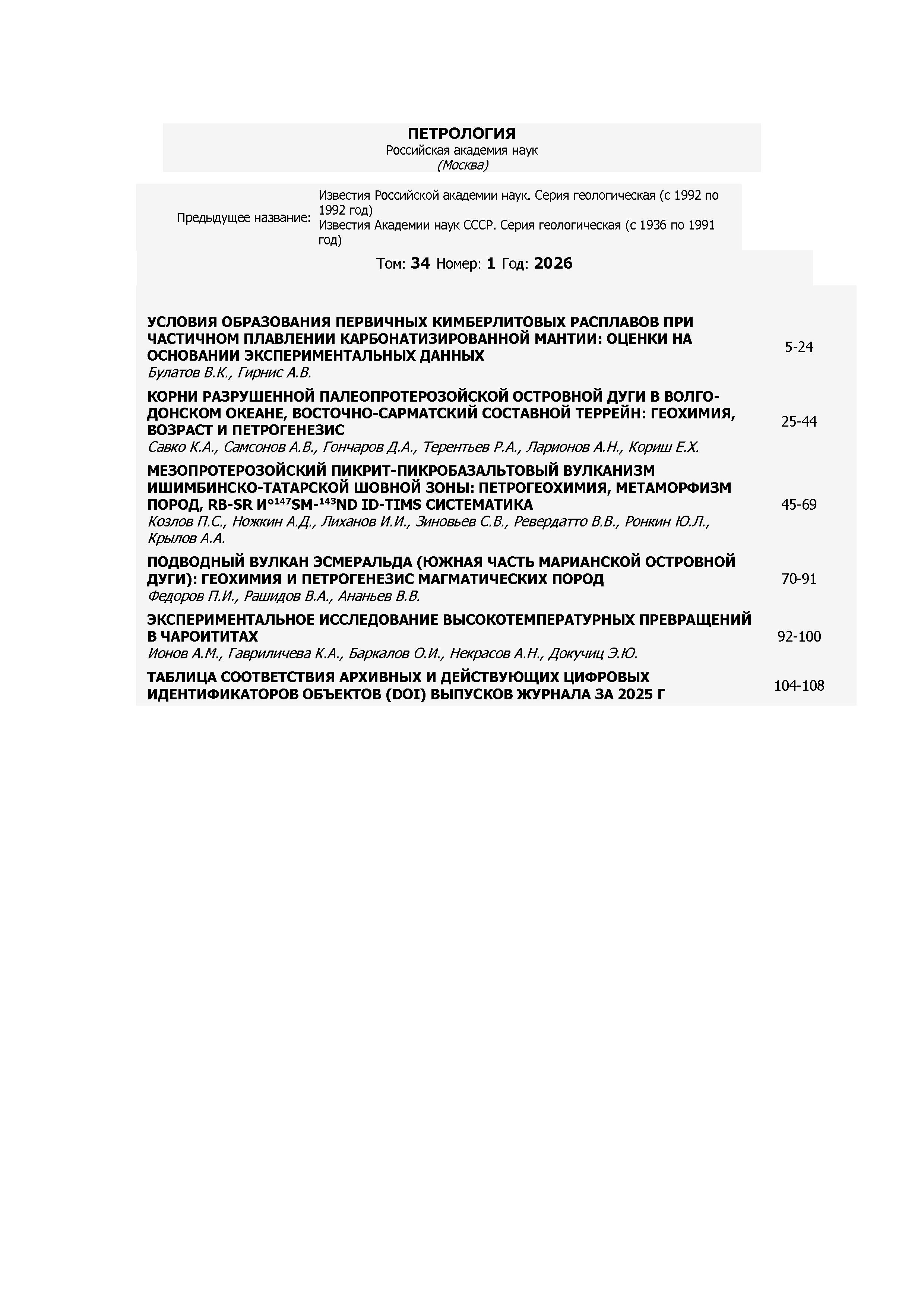 Петрология 2026 Т.34 N 1 | Петрология 2026 Т.34 N 1 | 2026 | 1 |