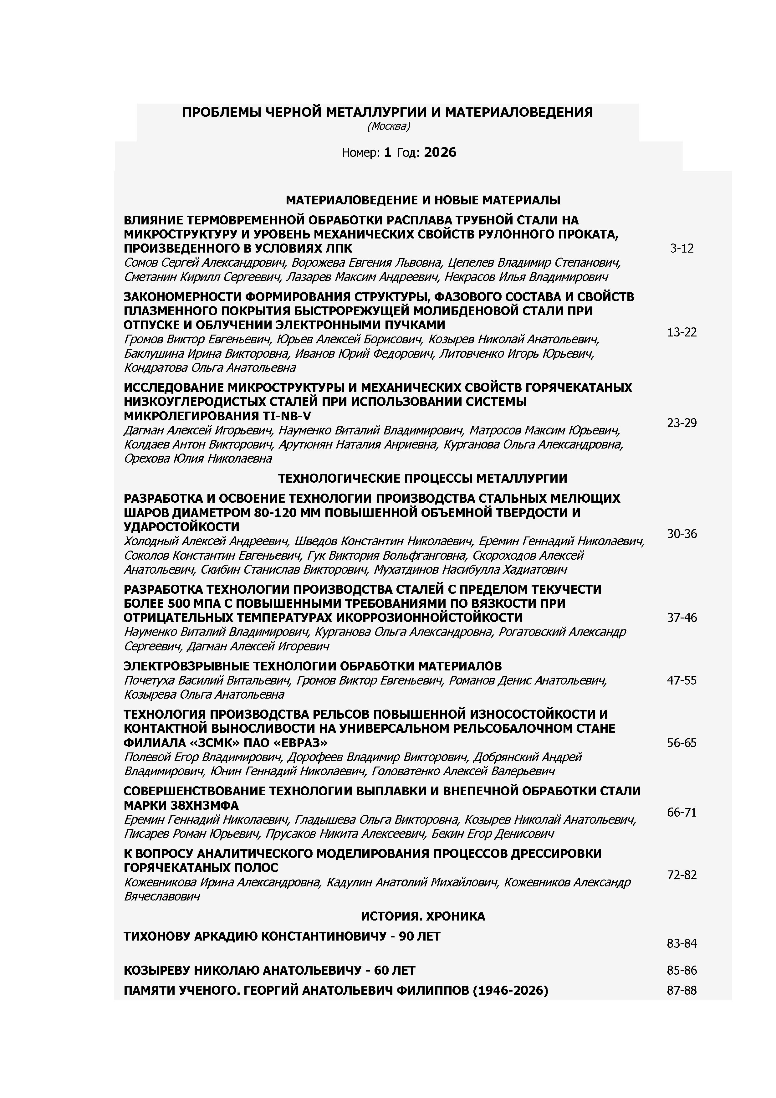 Проблемы черной металлургии и материаловедения 2026 N 1 | Проблемы черной металлургии и материаловедения 2026 N 1 | 2026 | 1 |