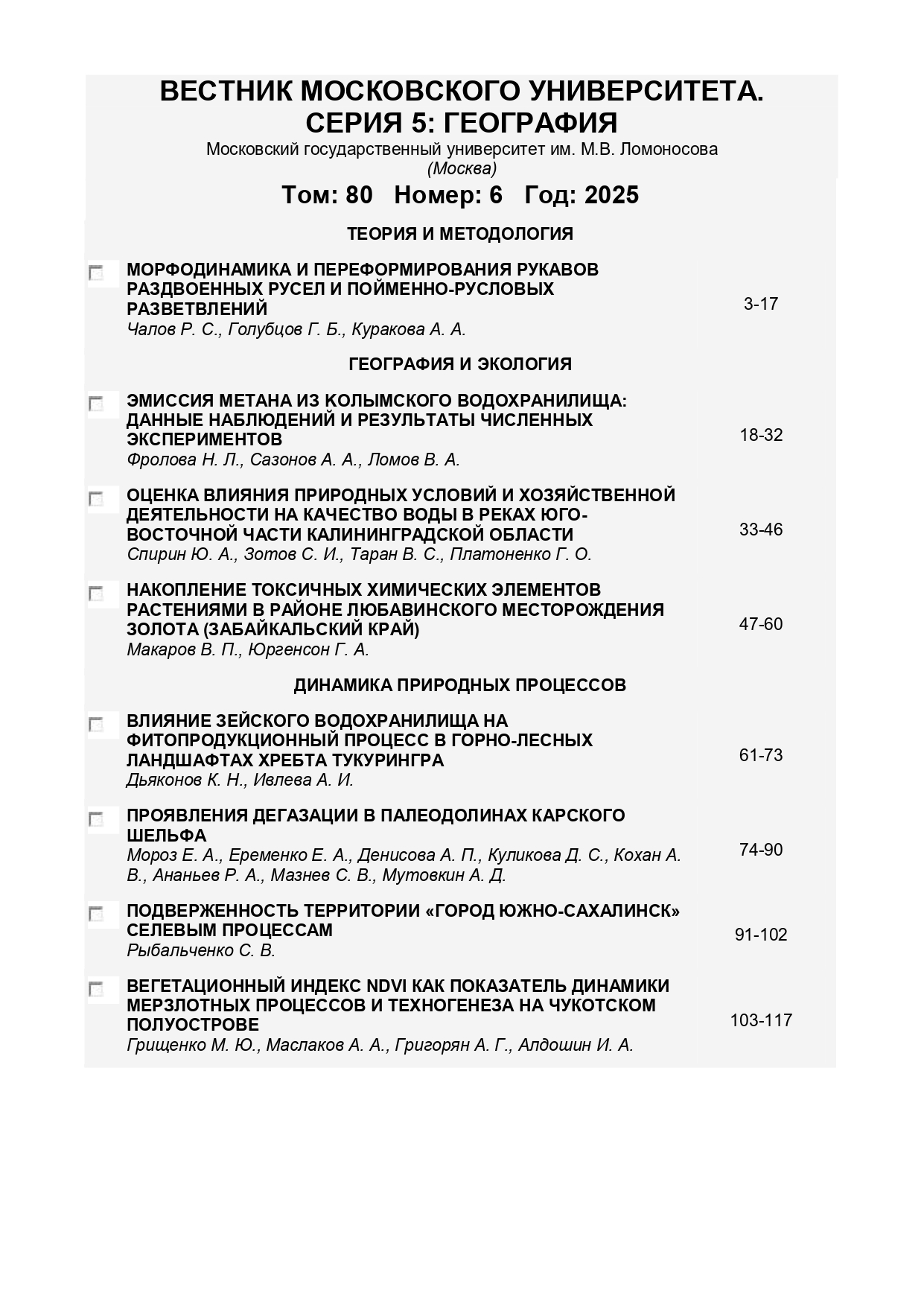 Вестник МГУ. Сер. География 2025 № 6 |