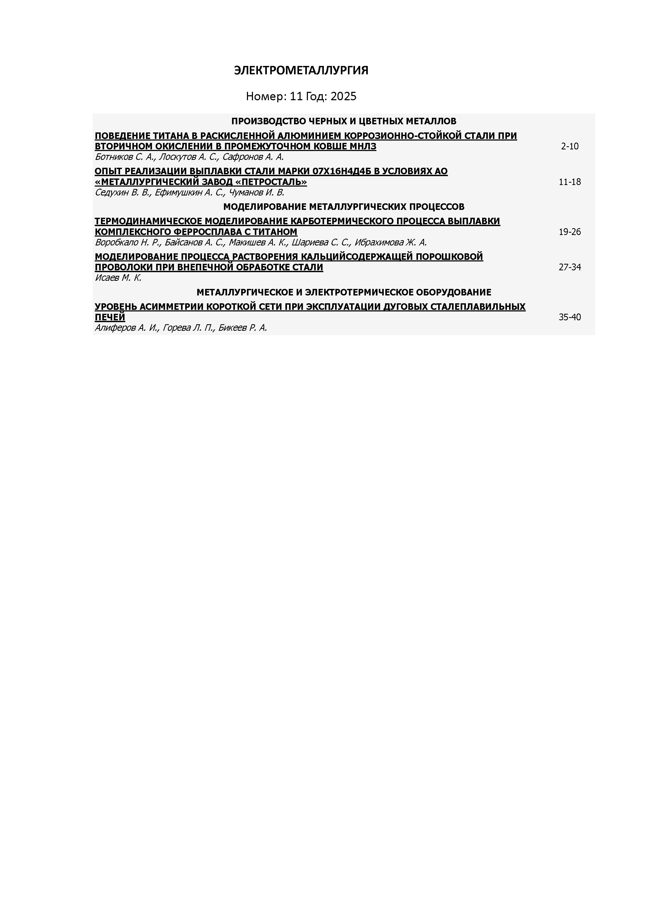 Электрометаллургия 2025 № 11 | Электрометаллургия 2025 № 11 | 2025 | 11 |