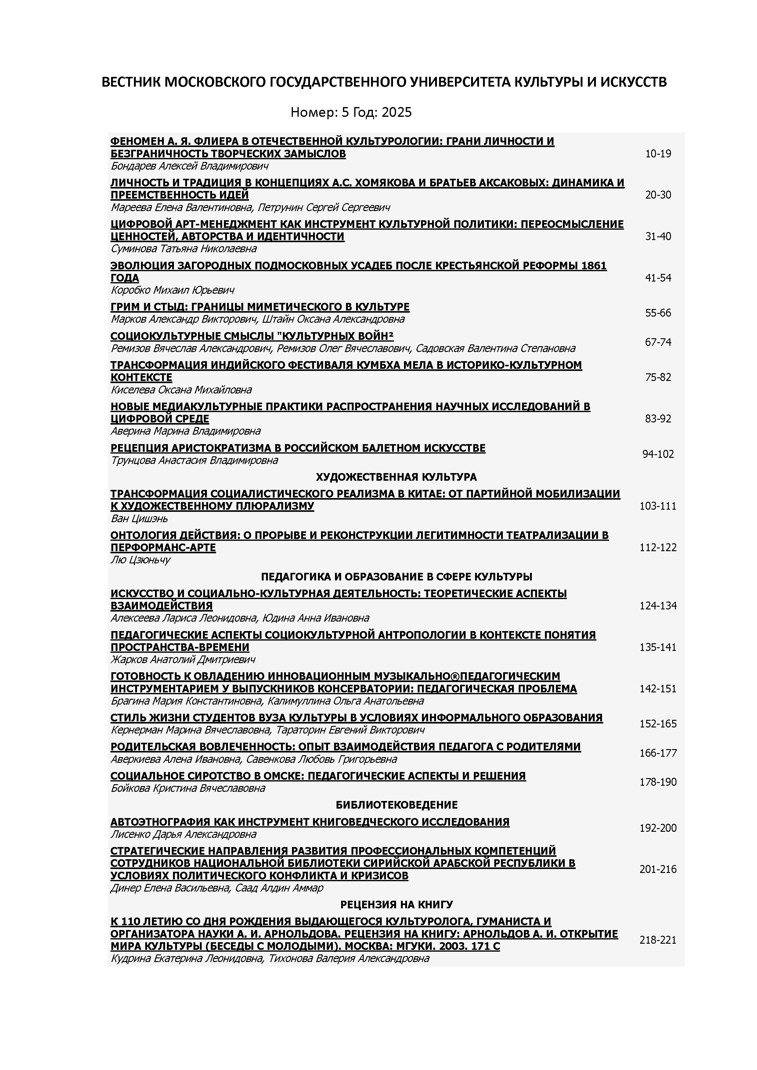 Вестник Московского гос. университета культуры и искусств 2025 N 5 |