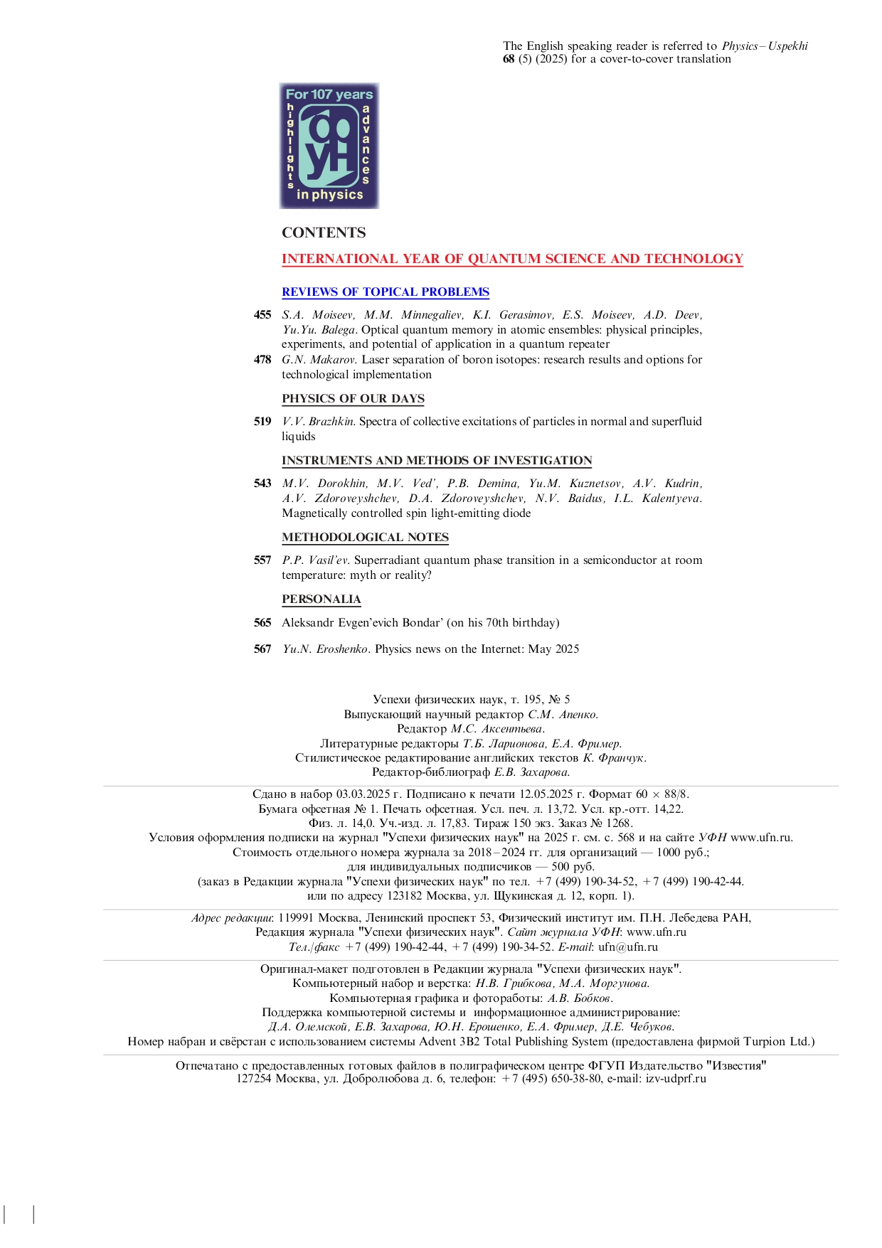 13.03.2026-12:48 Успехи физических наук 2025 Т.195 № 5 Успехи физических наук 2025 Т.195 № 5 2025 5 ,