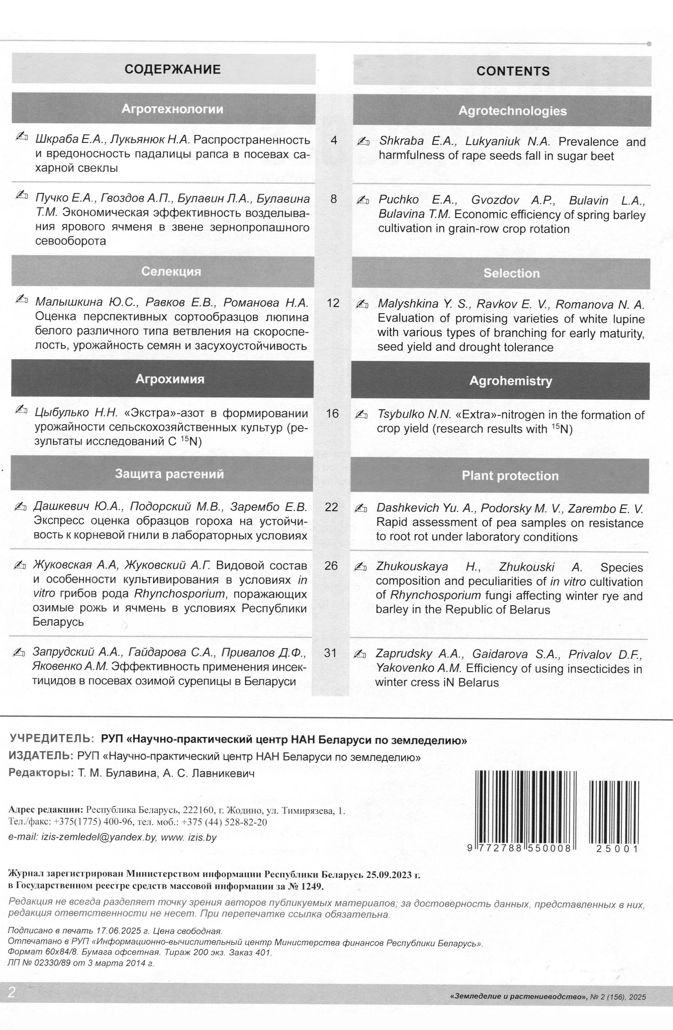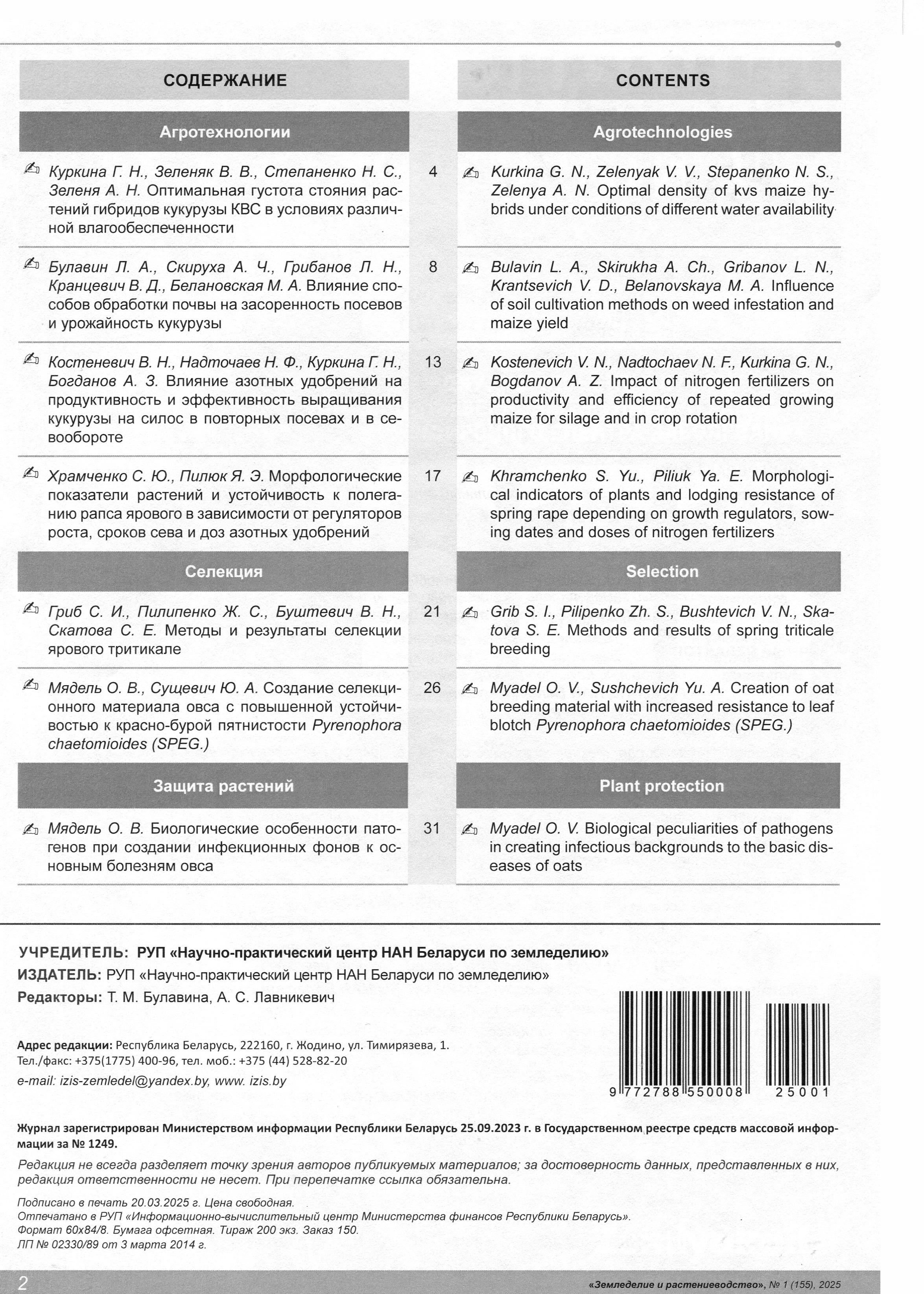 Земледелие и растениеводство 2025 № 2 | Земледелие и растениеводство 2025 № 2 | 2025 | 2 |