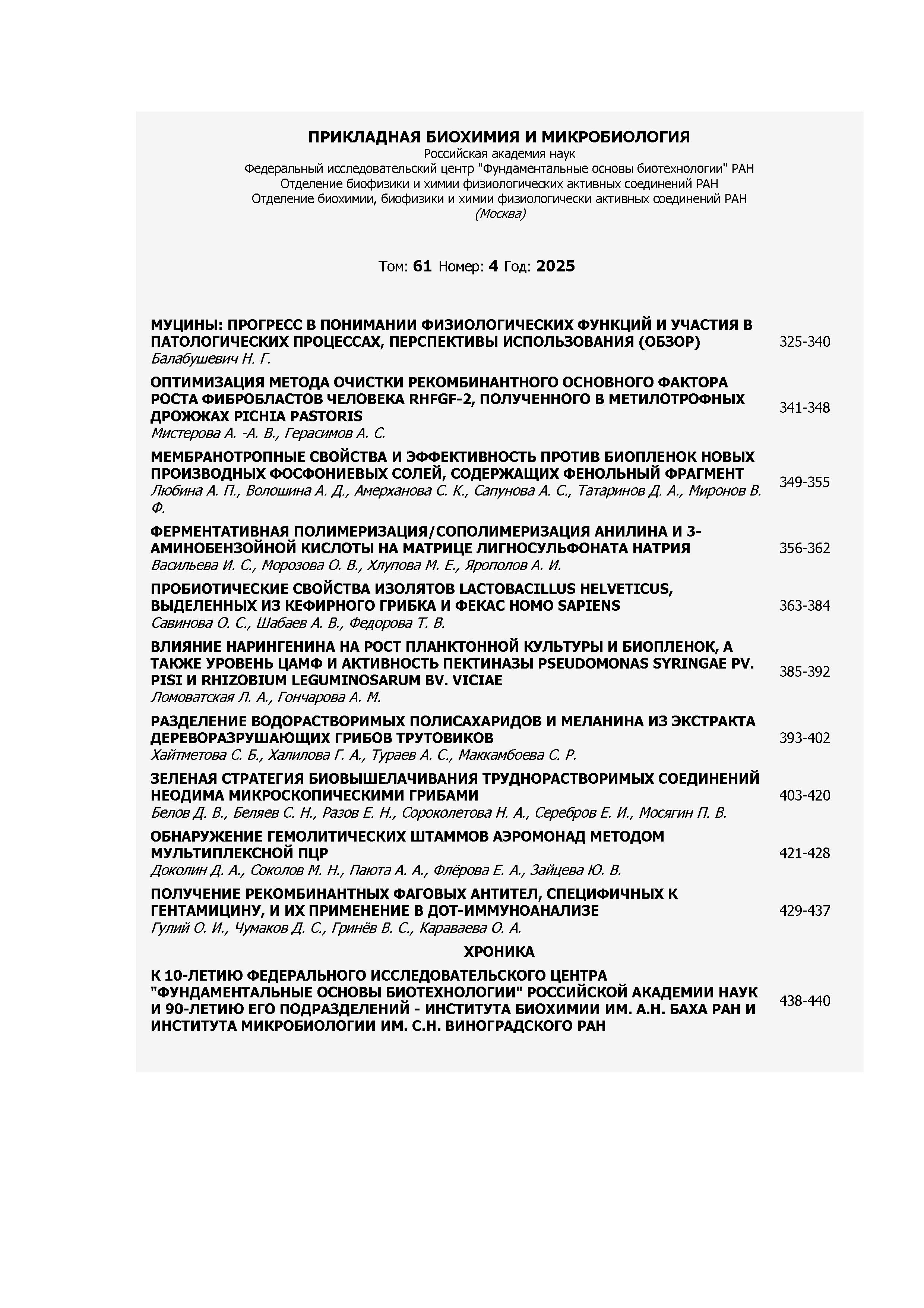 Прикладная биохимия и микробиология 2025 Т.61 N 4 |